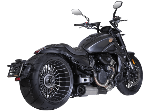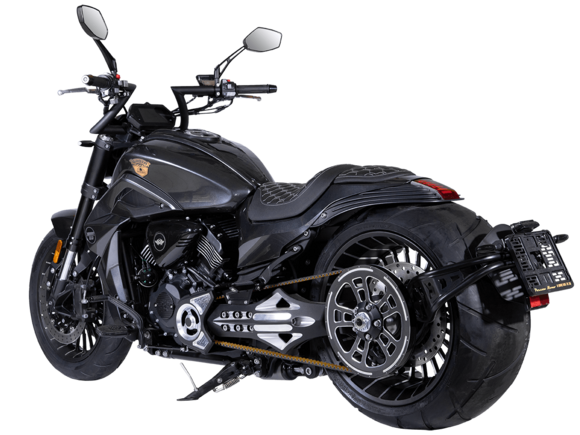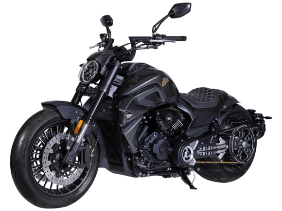 GROZA Timberwolf 800 – это не просто средство передвижения, а воплощение силы и выносливости, скрытых под привлекательным внешним видом.Сердце мотоцикла – производительный и надёжный V-образный 2-х цилиндровый 4-тактный двигатель с 4 клапанами жидкостного охлаждения. Максимальная скорость, которую может развить модель, – 160 км/ч.Механическая коробка передач имеет 6 ступеней. Ремень вариатора, произведённый компанией USA Gates, гарантирует долговечность. Топливная система представлена инжектором DELPHI. Запуск двигателя осуществляется с помощью электростартера.Передняя подвеска – перевернутая телескопическая регулируемая вилка с ходом 135 мм, задняя подвеска – пневматическая, регулировка которой осуществляется кнопками на руле или с брелока. Спереди о безопасном замедлении заботятся 2 4- поршневых суппорта с тормозными дисками 320 мм, сзади однопоршневой суппорт с плавающей скобой и тормозным диском 260 мм. Кованые алюминиевые колёса имеют размер 17х18 дюймов. На обоих колёсах есть ABS-система.Отличительная черта модели – увеличенная задняя покрышка 310 мм, которая делает вождение более устойчивым. Размеры модели 2420x890x1130 мм. Колёсная база 1650 мм. Клиренс 130 мм. Масса 288 кг. Топливный бак вмещает 22 л.Приборная панель представлена TFT-дисплеем с возможностью подключения смартфона. LED-оптика обеспечивает яркое освещение. Есть функция настройки сиденья по высоте – от 650 мм до 700 мм.GROZA Timberwolf 800 – сочетание потрясающей динамики, плавной подвески и брутального облика.Комплектация и внешний вид мотоцикла могут отличаться в зависимости от поставки. Изображение на сайте не гарантирует наличия тех или иных опций. Уточняйте информацию при оформлении заказа.