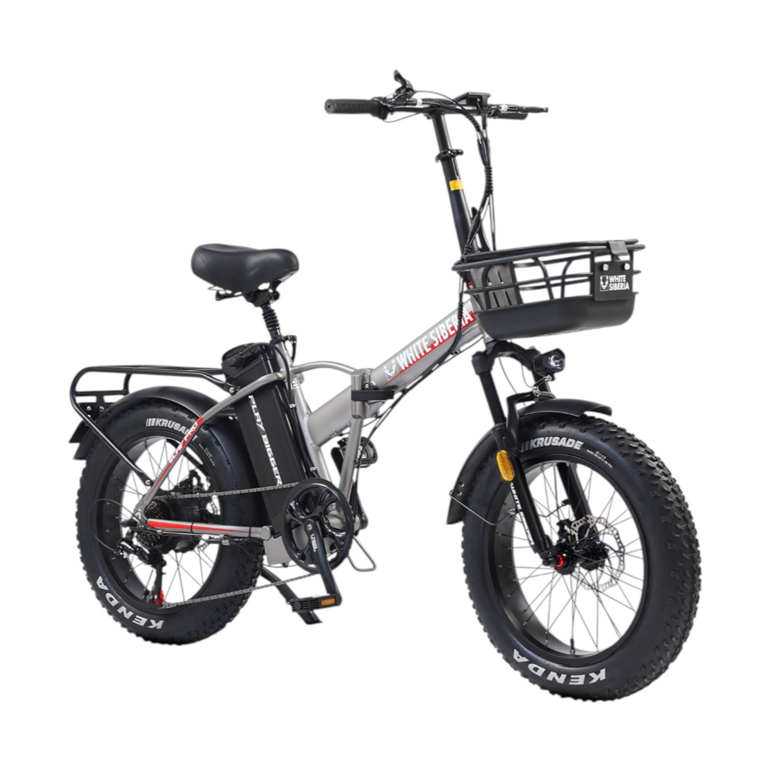 Электровелосипед WHITE SIBERIA SLAV PRO 1000WЭлектрический мини фет-байк - компактный и удобный маленький друг. С ним вы сможете комфортно передвигаться по городу, а в случае необходимости - сложить и уехать в пригород! Он создан для неспешных и комфортных велопрогулок по дорогам российских городов и пригорода!Чем же SLAV PRO так хорош?Мощный электромотор на 1000W отлично помогает на подъёмах в горку и экономит ваши силы во время дальних поездок! Он позволит вам взглянуть по-новому на покатушки - даёт насладиться дорогой и красотами города и парков!Усиленная рама из авиационного алюминия с легкосъёмной батареей на 48V 13A. Окрашена порошковой краской - надёжно защищена и красиво выглядит, благодаря 3 вариантам расцветки.Лёгкая, но прочная - велосипед в сборе весит всего 30 кг! Складная конструкция позволяет легко перевезти фет-байк в багажнике автомобиля или в общественном транспорте. Даже педали складываются! Так что во время хранения он занимает очень мало места.Колёса на 20 дюймов и шириной 4.0 - отличное соотношение манёвренности и проходимости! А благодаря резине Kenda с универсальным рисунком протектора - ещё и отличное сцепление с различными типами дорожных покрытий. Широкая резина лучше преодолевает различные препятствия - бордюры, корни деревьев, камни. В сочетании с регулируемой амортизационной вилкой - получается универсальный, устойчивый фет-байк.Металлические крылья на переднем и заднем колёсах полностью закрывают водителя от грязи, камней и брызг из-под колёс! Ведь широкая толстая резина с камерами даёт возможность ехать там, где другие идут пешком!Качественное навесное оборудование от фирмы SHIMANO, большой дисплей бортового компьютера с подсветкой, удобный лепесток газа, усиленный металлический багажник, передняя корзинка - всё это для вашего комфортного передвижения на мягком сидении электровелосипеда SLAV PRO 1000W.Дисковые механические тормоза спереди и сзади - просты и надёжны. А благодаря наличию подножке, ваш мини фет-байк может опереться и подождать, пока вы наслаждаетесь чашечкой ароматного кофе!Электровелосипед SLAV PRO - для ценителей компактных размеров, но огромных возможностей! Отдыхайте с удовольствием!