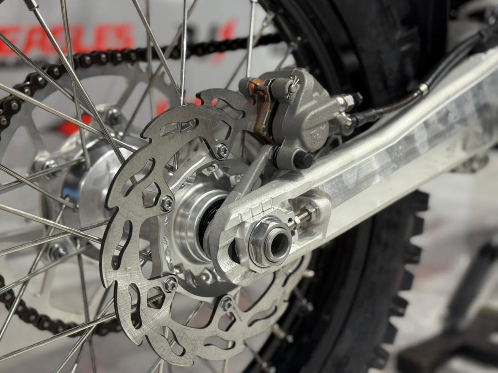 Мотоцикл AJERRA SAGAI C10 YB300H — это современный эндуро-байк, разработанный для уверенной езды как по пересечённой местности, так и по лёгкому бездорожью. Прочная рама К10 завода AJ1, копия KTM 2024 года, обеспечивает стабильность и точность управления в любых условиях, а качественный пластик в стиле Husqvarna 2024 года добавляет динамичный и стильный внешний вид. Двигатель Loncin YB300H 176 FMN с воздушным охлаждением демонстрирует надёжную работу, стабильную тягу и простоту обслуживания. В сочетании с карбюратором Nibbi Racing PWK 34 Black он обеспечивает точную подачу топлива и отзывчивость на газ, что делает мотоцикл удобным для активной езды и тренировок. Подвеска модели тщательно продумана: передняя вилка HTW SCC 930 мм с одним картриджем и задний амортизатор HTW 2450 с прогрессией гарантируют плавность хода и контроль над мотоциклом на неровных поверхностях. Алюминиевый маятник и фрезерованные траверсы AJ1 2024 повышают прочность конструкции и долговечность техники. Эргономика и управление на высоте: усиленный руль AL7075, алюминиевые подножки AJ1 2024 (копия S3), ручка газа Nibbi и грипсы Lock ON обеспечивают комфорт и надёжность в любых условиях. Светодиодная оптика 2 EYE LED Generation 4 (50W) позволяет безопасно ездить даже в сумерках, а алюминиевые обода UNISON 7116 и фрезерованные ступицы повышают прочность колёсной базы. Мотоцикл оборудован цепью KMC 520 Pro, алюминиевой ведомой звездой AL7075 51 зуб, а также выхлопной системой AJ1 2025, что делает его управляемым и надёжным при любых нагрузках. Для удобства и защиты техники предусмотрены счётчик моточасов, защита рамы и мотора, стропы передние и задние, заглушки руля. Сиденье AntiSkid обеспечивает комфортную посадку и предотвращает скольжение. Высота по седлу составляет 940 мм, что делает AJERRA SAGAI C10 YB300H удобным для райдеров среднего и высокого роста. Этот мотоцикл сочетает в себе высокотехнологичные комплектующие, надёжность и стильный дизайн, подходя как для спортивных покатушек, так и для любительского эндуро..