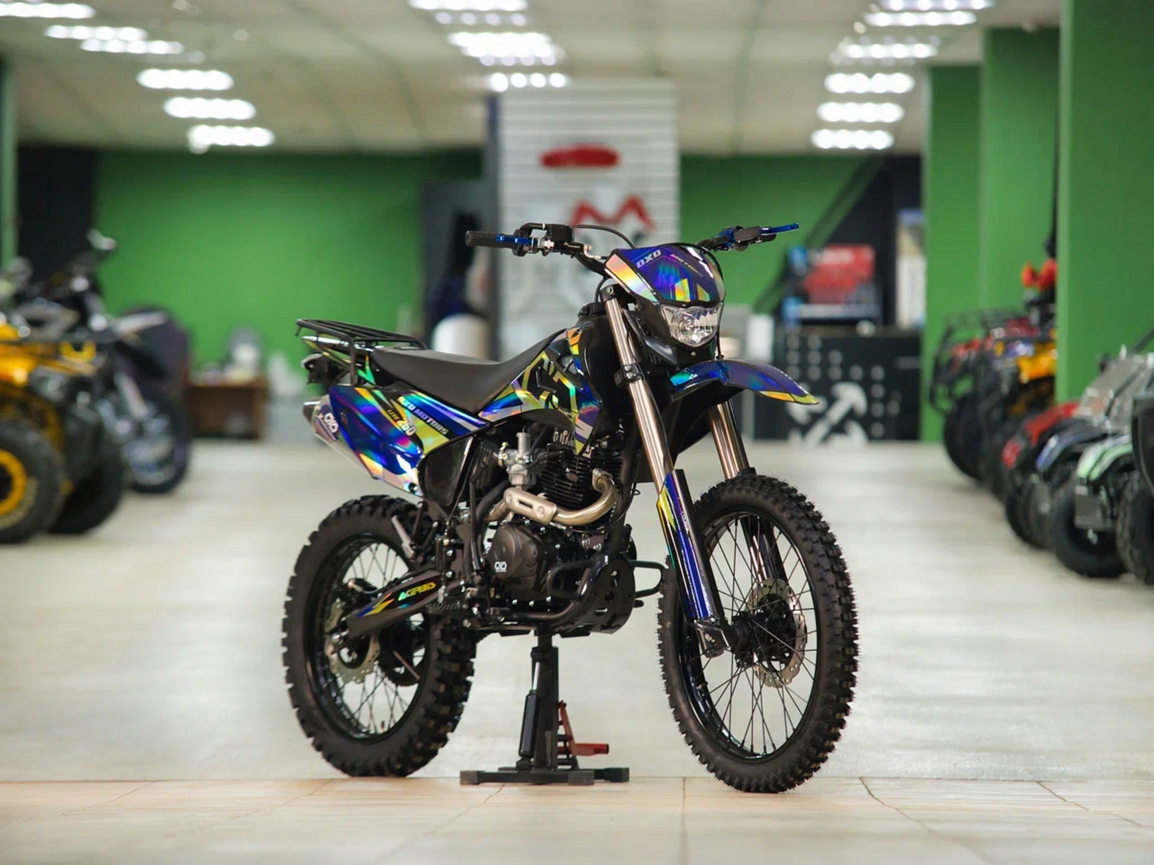 ДвигательДвигатель ZS165FMM - 4-тактный двигатель воздушного охлаждения объёмом 223 куб см с двумя клапанами, оснащён балансировочным валом, благодаря которому уменьшается избыточная вибрация, передаваемая от двигателя на раму и общую конструкцию техники. Характеризуется хорошей тягой с самых низов и лёгким пуском с помощью электростартера. Двигатель отлично зарекомендовал себя в качестве надёжного, универсального, неприхотливого мотора с хорошими характеристиками.РамаРама мотоцикла OXO производится из труб шестигранного сечения хром-молибденовой стали, которая является очень прочной и легкой. Геометрия рамы, благодаря правильно выверенному центру тяжести и углу наклона вилки - способствует наилучшей управляемости устойчивости мотоцикла на низкой скорости.ПодвескаПередняя вилка перевернутого типа. Мотоцикл снабжен моноамортизатором, который соединен посредством системы рычагов прогрессии. Система прогрессии, обеспечивает равномерную, мягкую работу и увеличивает длину рабочего хода подвески.КолесаРазмер передней покрышки: 80/100-21. Размер задней покрышки: 120/100-18. Они прекрасно себя ведут по песку и грязи, что позволяет райдеру отлично показать себя на пересеченной местности.Тормозная системаТормозная система мотоцикла - полностью гидравлическая с армированными шлангами. Спереди и сзади установлен двухпоршневой суппорт. Данная конфигурация тормозных механизмов, позволит быстро и безопасно остановиться с максимальной скорости даже на бездорожье.РульВажная часть современного эндуро мотоцикла - усиленный руль переменного сечения. На руле установлен рычаг заслонки подсоса. Алюминиевая ручка газа с коротким ходом имеет регулировку троса. Также мотоцикл укомплектован электронной панелью приборов..