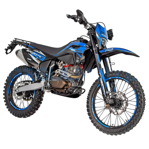 Мотоцикл Regulmoto Tour Enduro 250PR - легкий турэндуро от Regulmoto. Оснащен двигателем с балансирным валом гасящим вибрации. Вакуумный карбюратор PD30 даёт экономию топлива и мощь на низах. На мотоцикл установлена раздушенная выхлопная система, однако в меру тихая. Коробка передач на выбор: 5-ти ступенчатая с кикстартером, либо 6-ти ступенчатая без кикстартера. Оснащен усиленным маятником и прогрессией. Диаметр перьев передней вилки 41мм. Усиленная 520-ая сальниковая цепь. Подвеска от Regulmoto Sport 003.Весь пластик гибкий и не ломается при загибах. Алюминиевый руль переменного сечения и удобное двухместное эргономичное сиденье. Из плюсов модели также стоит отметить электронный спидометр, оснащение защитой рук и ловушкой цепи. Мотоцикл поставляется с ПТС. Яркая светодиодная фара LED даёт возможность передвигаться в темное время суток.