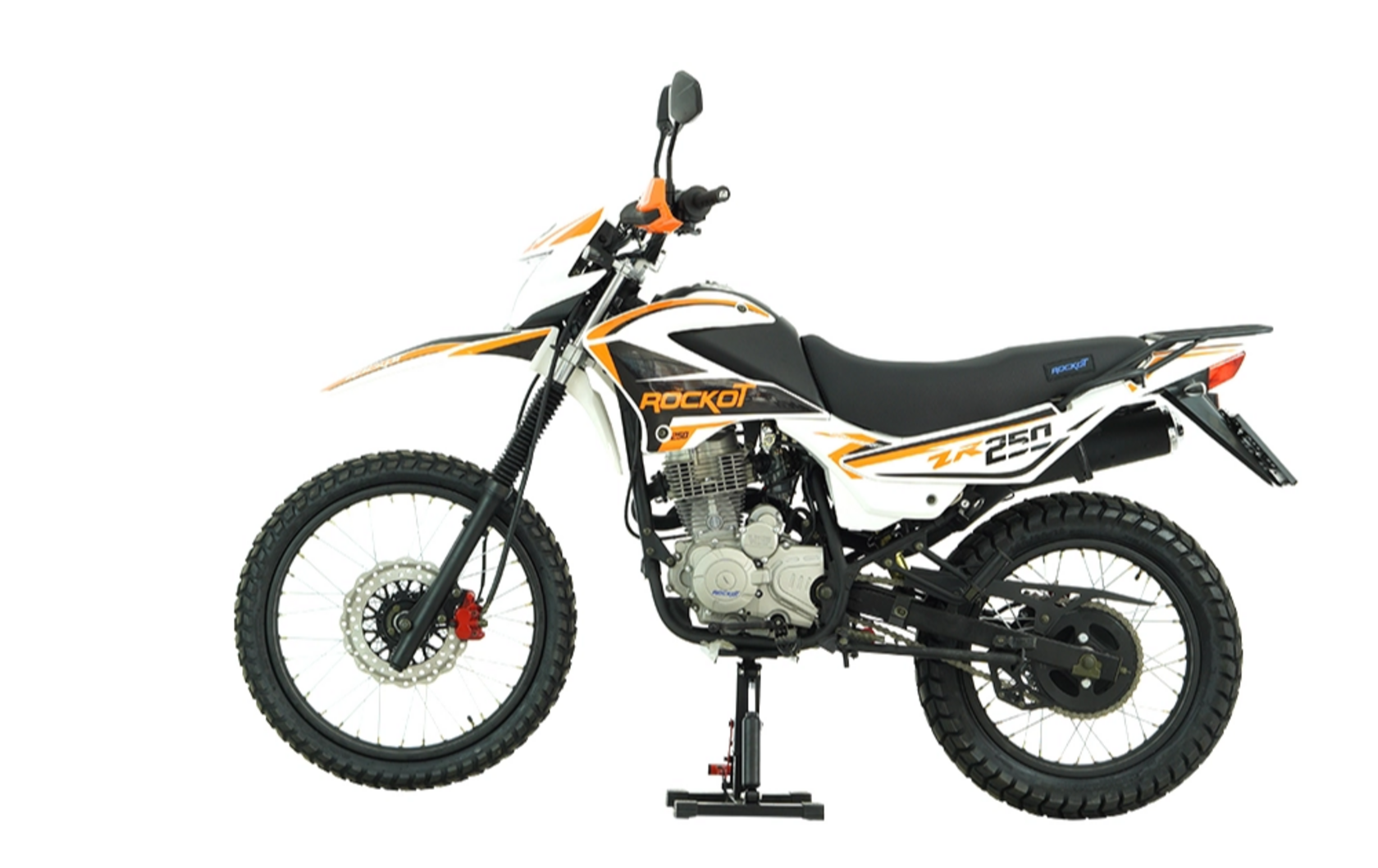 Представляем вашему вниманию новинку сезона 2024 года - бюджетный софт-эндуро мотоцикл ROCKOT ZR250.ZR250 - это полноценный эндуро мотоцикл с электронным ПТС, который был создан для повсеместной езды, будь то асфальтированные дороги общего пользования, грунтовые проселочные дороги и, конечно же, бездорожье. ROCKOT ZR250 выполнен по всем канонам софт-эндуро, а именно: прочный металлический бак, облицовка из мягкого ударопрочного пластика, широкое и комфортное сиденье для водителя и пассажира, а в задней части установлен стальной багажник. Мотоцикл производится в двух вариантах расцветки графики: черно-красной и черно-оранжевой.Дизайн мотоцикла ROCKOT ZR250 напоминает классический эндуро мотоцикл японского производства начала 2000-х годов. Именно эти байки послужили прообразом для создания бюджетного лайт-эндуро мотоцикла. Классическая вилка спереди, безлинковая подвеска сзади и колесная компоновка 21/18 - все это делает мотоцикл стильным, аутентичным, проходимым и доступным. ROCKOT ZR250 оснащен четырехтактным двигателем объемом 223 см³ и мощностью 16 лошадиных сил. Отличительная особенность этого двигателя от других “одноклассников” - это нижний распредвал и привод ГРМ штангами-толкателями. Данная конструкция двигателя является очень простой и надежной.Также, большим преимуществом газораспределительного механизма с приводом на толкателях, считается широкий диапазон крутящего момента во всех диапазонах вращения коленчатого вала.Система питания двигателя - карбюраторная, с высокопроизводительным карбюратором PZ30 с ускорительным насосом, который обеспечивает быстрый отклик на ручку газа, а также стабильную работу даже при холодном запуске. Обогатитель топливной смеси расположен на руле, что делает очень удобным первый запуск.Двигатель оснащен балансирным валом, снижающим уровень вибрации. Мотоцикл построен на прочной стальной раме, окрашенной в черный матовый цвет. Мотоцикл оборудован подножками для перевозки пассажира. Подрамник также выполнен из стали, к которому крепится металлический багажник, позволяющий перевозить грузы и установить центральный кофр.. Подвеска ROCKOT ZR250 типична для данного класса мотоциклов - софт-эндуро. Это классическая вилка спереди, длиной 840 мм, и моноамортизатор, длиной 300 мм, сзади. Система рычагов прогрессии отсутствует, что облегчает эксплуатацию и обслуживание подвески мотоцикла. Несмотря на классическую простоту амортизаторов, они позволят комфортно ездить по бездорожью даже с пассажиром. Спереди и сзади установлена дисковая гидравлическая тормозная система. Передний тормозной диск увеличенного диаметра - 270 мм, который работает в паре с двухпоршневым суппортом. Задняя тормозная система имеет диск диаметром 240 мм и однопоршневой суппорт. Гидролиния тормозной системы состоит из армированных шлангов, которые обеспечивают наилучший отклик тормозной системы и повышенную надёжность всей системы. ROCKOT ZR250 с завода комплектуется универсальными туристическим шинами, позволяющими передвигаться по любому типу поверхностей. Передняя шина имеет размерность 90/90-21, а задняя - 120/90-18. Шины установлены на прочные стальные диски, окрашенные в черный матовый цвет.Привод на заднее колесо осуществляется цепью с шагом 520. Ведомая приводная звезда из стали насчитывает 45 зубьев. Кому подойдет эндуро мотоцикл ROCKOT ZR250Колесна