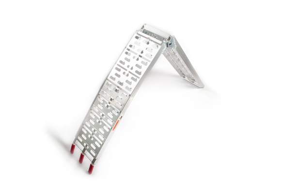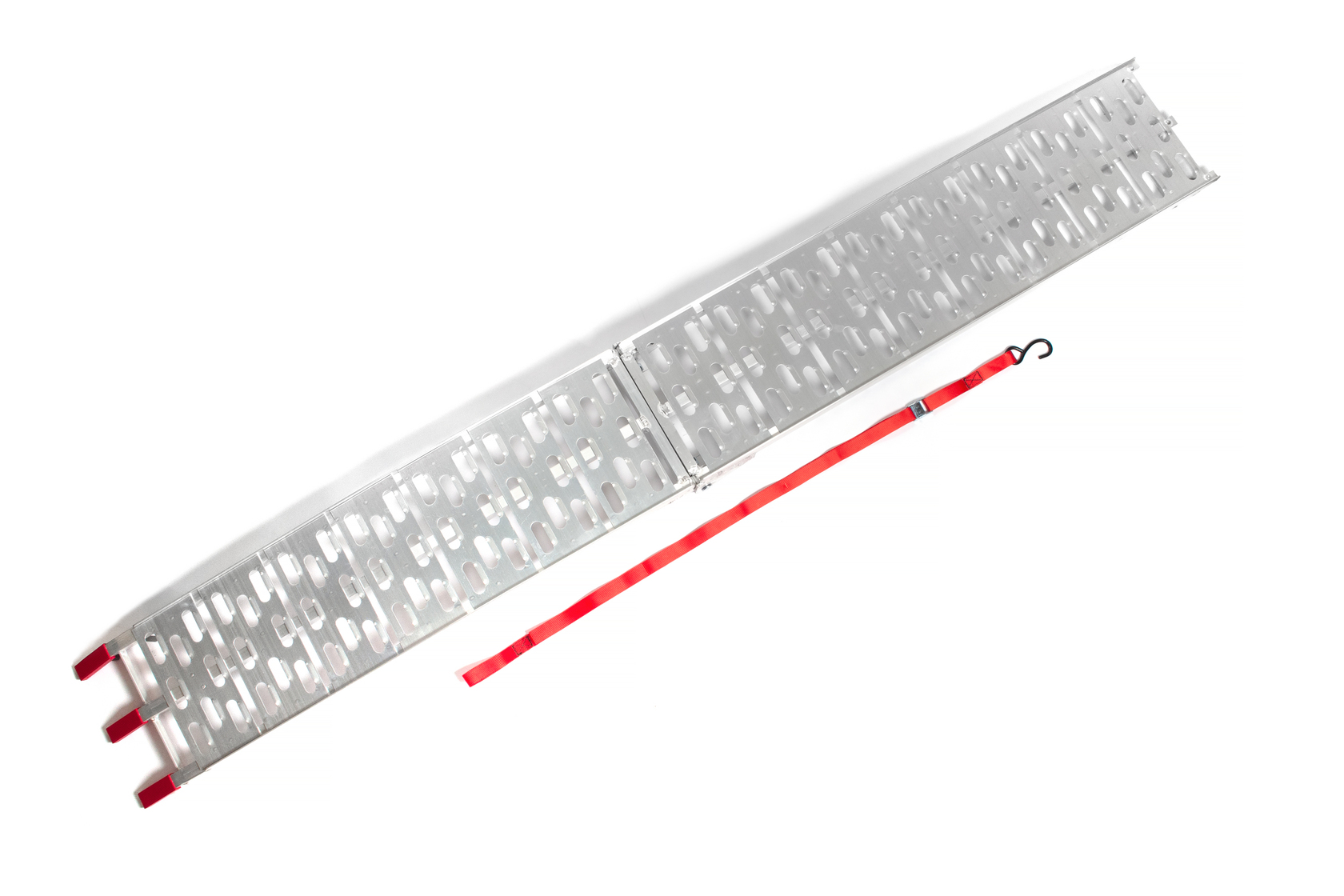• Удобный и легкий складной (переломный) трап из алюминия для погрузки и выгрузки мотоцикла, питбайка или квадроцикла. Максимальная допустимая нагрузка до 250 кг. Благодаря складной конструкции трап легко транспортируется и не занимает много места. В комплекте идет специальная стропа для фиксации трапа к транспортному средству для безопасного использования.