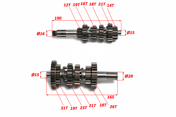 Валы КПП в сборе комплект ZS172FMM-3 PR, 6 передач