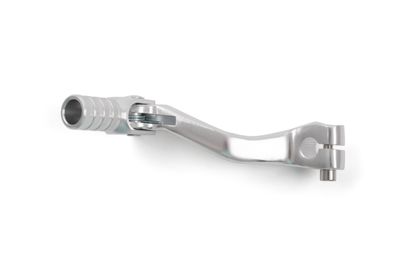 • Алюминиевый складной рычаг переключения передач серебристого цвета для эндуро мотоциклов с двигателями 165-172 FMM и 174 CBS-NB. Изготовлен из литого алюминия со складным кончиком, который предотвращает поломку рычага при падении или боковом ударе. Универсальная конструкция с вылетом, не гнет вал при падениях. Установка без втулки. Совместим с двигателями 165FMM, ZS170MM-2, ZS172-3A, ZS172-5A, ZS174MN-3.