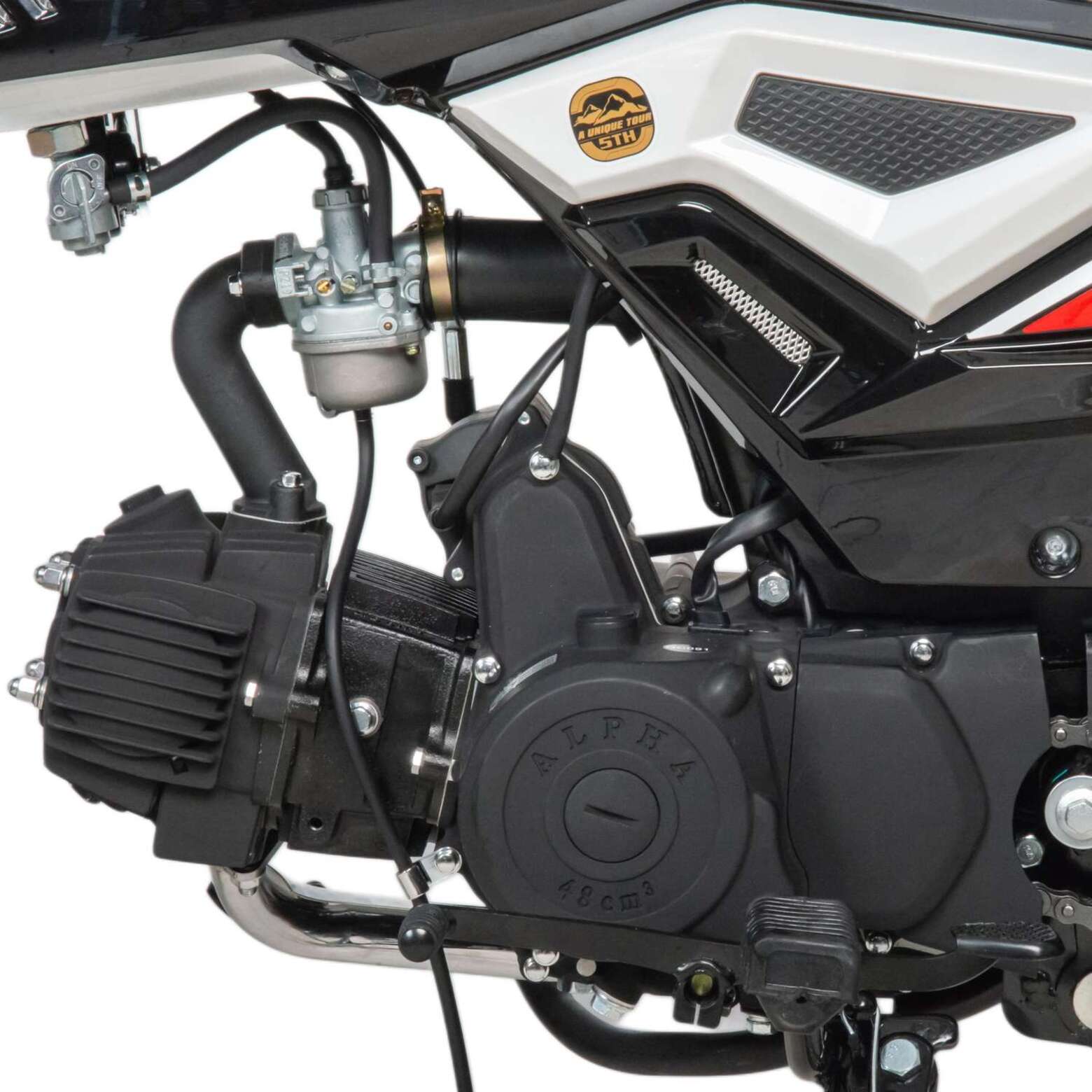 Мопед поставляется с 48 кубовым одноцилиндровым по документам, 110 по факту четырехтактным двигателем с воздушным охлаждением (1P39FMB). Установлен карбюратор Keima PZ19.