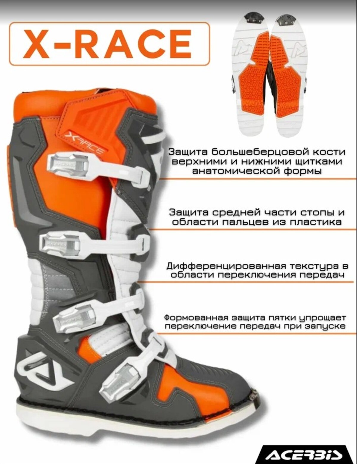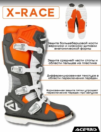 Главная ... Ботинки Мотоботы кроссовые Acerbis X-RACE Orange/Grey, (р.41)