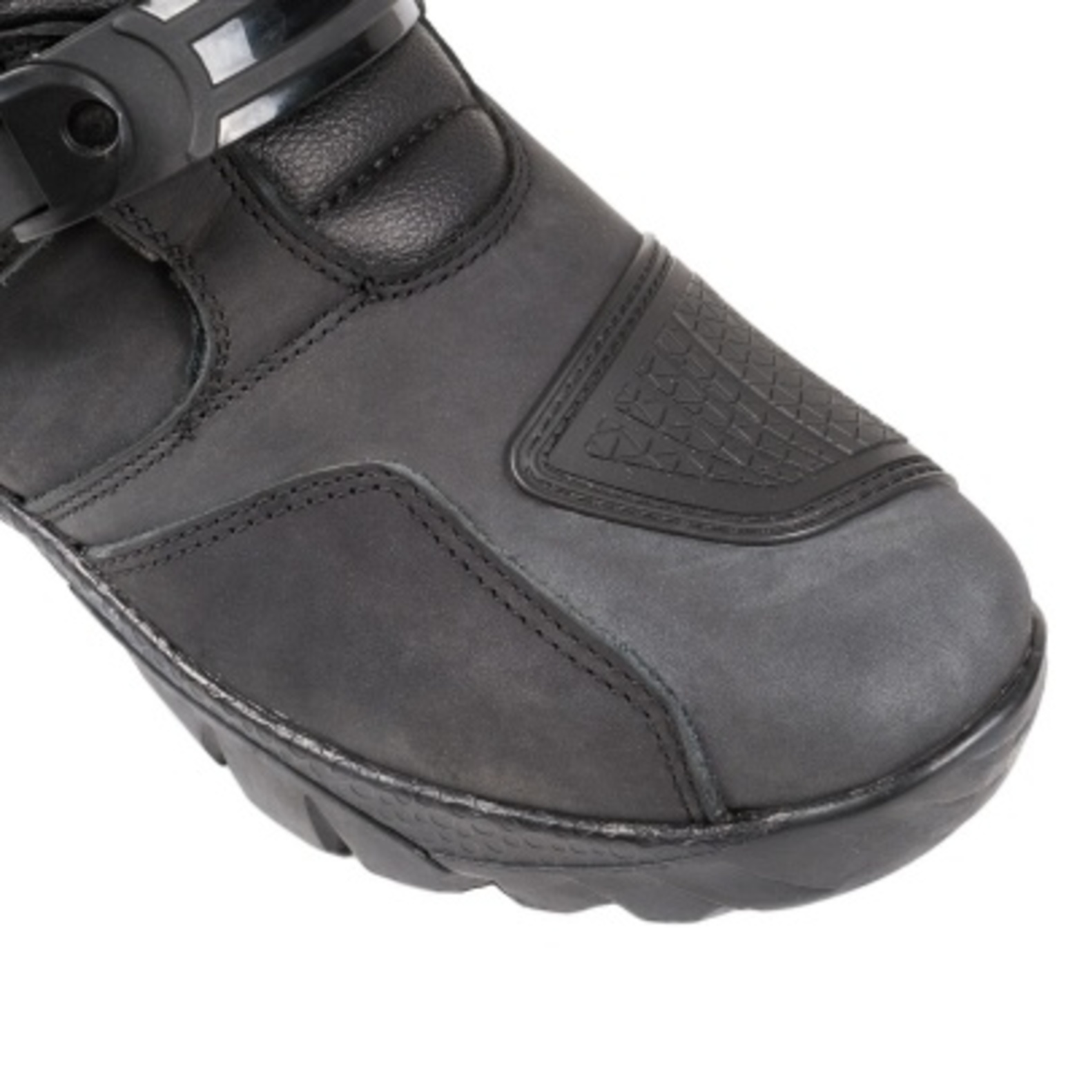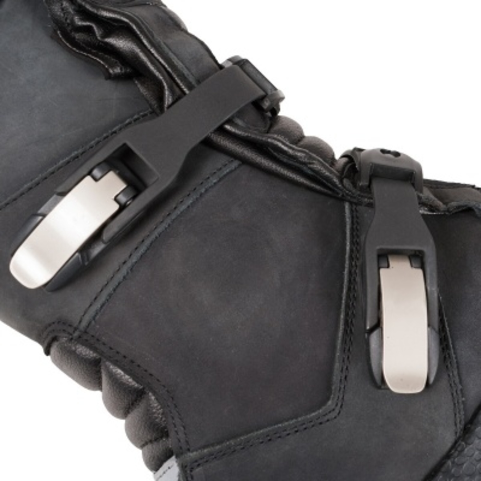 Туристическая версия эндуро-ботинок предназначена прежде всего для тех, кто катается по бездорожью в свое удовольствие и не участвует в соревнованиях. Они созданы для того, чтобы обеспечивать надёжную защиту ноги райдера в сочетании с защитой от погодных условий и повседневным удобством. Замшевая поверхность со временем складывается в уникальные для каждой пары узоры. Отсутствие молнии позволяет минимизировать время и усилия, которые требуются, чтобы надеть/снять ботинок.Особенности:• Защита голени и накладка для переключения передач из термопластика (TPU);<:paragraf>• Встроенная защита голеностопного сустава;• Надёжные карабины;• Резиновая подошва с глубоким протектором сделана для надёжного расположения по подножках.Удобная застежка с утягиванием верхней частиИспользование рециклированной кожи обеспечивает устойчивость к различным погодным условиямСменная анатомическая стелька
