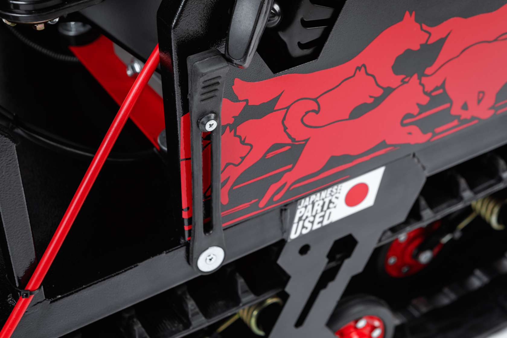 • 12. Мотобуксировщики IKUDZO имеют идеальную балансировку и нагрузку на гусеницу. Двигатель размещён так, что даже без дополнительного груза на мотособаке давление на снег будет равномерно, что значительно повышает проходимость!