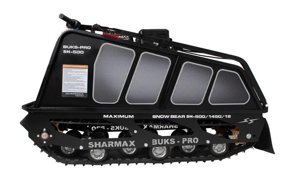 Мотобуксировщик SNOWBEAR SER500 1450 HP18 MAXIMUM настоящий помощник на охоте и рыбалке, решит множество задач в сельскохозяйственной деятельности. Идеальное сочетание цены и качества.Гусеница мотобуксировщиков “Sharmax” шириной 500 мм является надежной и универсальной. Обладает повышенной стойкостью к износу, а специальная форма протектора дает отличное сцепление с поверхностью, при этом сохраняя уверенную маневренность мотобуксировщика.
