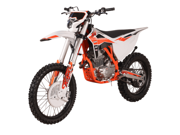 KAYO K6-A 300 MX – новинка в линейке эндуро мотоциклов. Это первый полноразмерный эндуро семейства KAYO с воздушным охлаждением. Создан для тех, кто ищет неприхотливый и выносливый мотоцикл для экстремальных условий офф-роуда и горных трасс.Модель оснащена одноцилиндровым 4-тактным двигателем 175FMN CB300RL с 4 клапанами и балансирным валом объёмом 271 см³ и мощностью 27 л.с. Запуск осуществляется с помощью электростартера. Карбюратор NIBBI PWK34 отвечает за стабильную работу даже при высоких нагрузках. Чтобы контролировать время работы техники, приборная панель оснащена счётчиком моточасов. Механическая коробка передач имеет 5 ступеней.Ходовая часть включает переднюю подвеску KAYO Racing Performance (KRP), произведённую компанией KKE специально для KAYO, с ходом 940 мм и задний моноамортизатор с ходом 480 мм. Оба компонента оснащены полным набором регулировок. Это позволяет настроить мотоцикл под конкретные условия и стиль вождения, чтобы езда по неровностям была более плавной и устойчивой.Классические спицованные колёса с алюминиевыми дисками и шины YUANXING диаметром 18 и 21 дюйм создают крепкий зацеп с поверхностью. Передние и задние дисковые тормоза гарантируют безопасность и контроль над скоростью. Пластиковая защита тормозных дисков повышает долговечность системы.Благодаря передней LED-фаре управление становится возможным даже в тёмное время суток.KAYO K6-A 300 MX – выбор тех, кому нужен производительный, лёгкий в обслуживании и надёжный мотоцикл для активного отдыха и спорта. Подойдёт и новичкам, и опытным гонщикам.Комплектация и внешний вид мотоцикла могут отличаться в зависимости от поставки. Изображение на сайте не гарантирует наличие тех или иных опций. Уточняйте информацию при оформлении заказа.