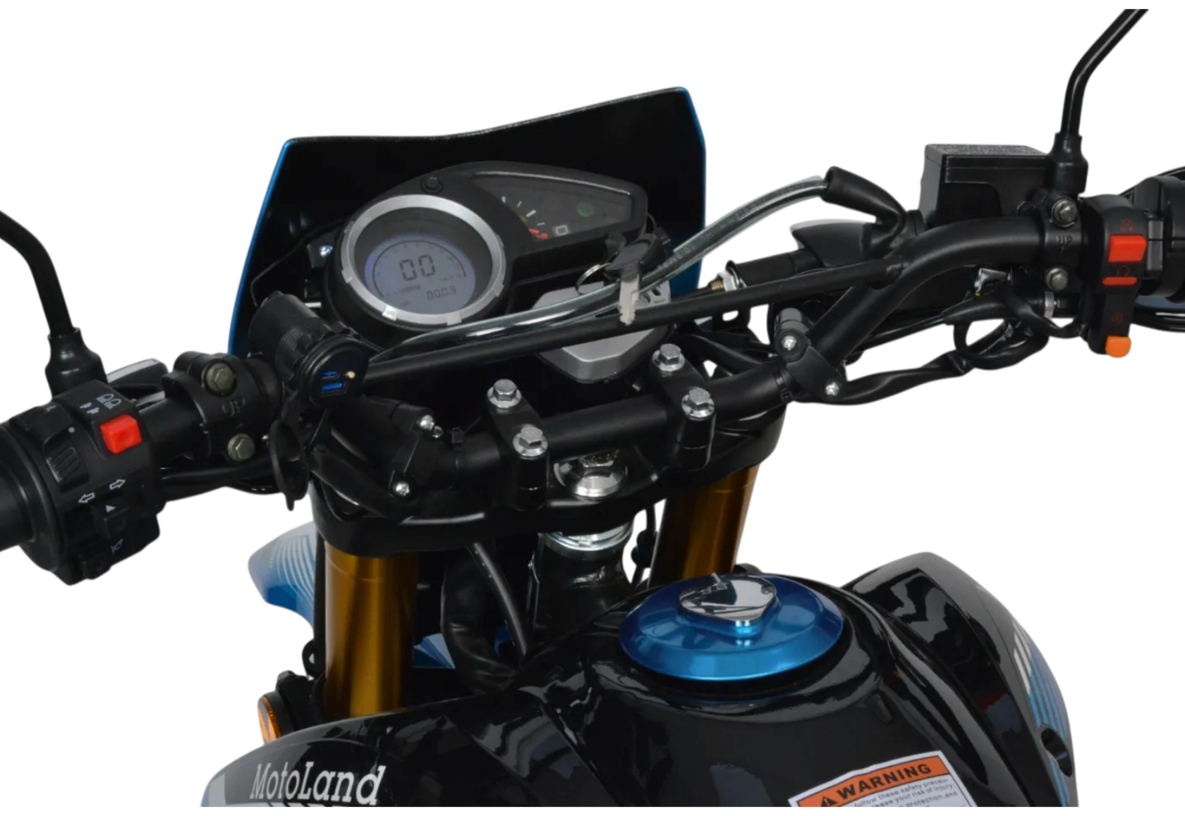 Прочность, мощь и надежность – вот ключевые характеристики кроссового мотоцикла 300 ENDURO ST NEON от бренда MOTOLAND. Этот байк представляет собой идеальное сочетание высоких технологий и безупречного дизайна, созданного для тех, кто стремится преодолевать любые трудности на дороге.Одной из важнейших особенностей этой модели является ее мощный двигатель с рабочим объемом 300 см3 и маркировкой 175 FMN PR5. С мощностью в 25 лошадиных сил и балансирным валом, этот мотоцикл готов преодолевать самые сложные трассы.Что касается трансмиссии, то здесь применена механическая передача с пятью ступенями и цепным ГРМ, что обеспечивает плавное переключение передач и высокую надежность в эксплуатации.Система охлаждения воздушно-масляная, что дает эффективное охлаждение двигателя в самых экстремальных условиях. А при запуске мотоцикла вы сможете воспользоваться как электростартером, так и кикстартером, делая его надежным в любой ситуации.Карбюратор PZ34 и свеча зажигания D8EA гарантируют оптимальную работу двигателя на любых режимах, а использование бензина с октановым числом 92 обеспечивает экономичный расход топлива.Этот мотоцикл оснащен спицованными металлическими колесами размером 90х100 R21 спереди и 110х100 R18 сзади, что обеспечивает отличное сцепление с дорогой и устойчивость на пересеченной местности.Приборная панель выполнена в формате LCD, отображая ярко и четко информацию о состоянии мотоцикла. А линзованная диодная фара и задний стоп-сигнал гарантируют безопасность в ночное время и обозначают ваше присутствие на дороге.