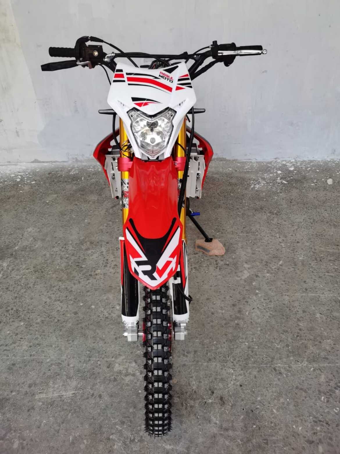 Это полноразмерный кроссовый мотоцикл его база по осям составляет 1430 мм., и габаритами 2180х800х1300 мм. Высота по седлу составляет 940 мм, что позволяет комфортно себя чувствовать райдерам среднего роста.