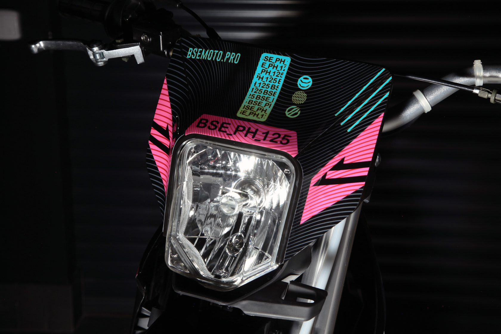 Питбайк BSE PH125 на колесах 17/14 дюймов – один из самых популярных, надежных и продаваемых питбайков 125 куб см среди китайских производителей! Этот классический питбайк объёмом 125 см3 обладает рядом модификаций и полезных усовершенствований, которые дополняют его функционал и отличают от конкурентов. PH125 оснащен колесами классическим для питбайка размером колес 17/14. Основа PH125 - рама из хромомолибденовой стали повышенной жесткости с литыми усилителями - фирменный знак качества завода BOSUER! Cиловая установка питбайка – надежный, тяговитый и мощный 4-тактный двигатель Zonghshen 125 куб см с воздушным охлаждением и мощностью 10 лс. Питает мотор карбюратор Jingke PZ 26. Питбайк оснащен 4-ступенчатой механической трансмиссией. Запуск мотора осуществляется при помощи электростартера или кик-стартера. Подвески с большими ходами: передняя - телескопическая вилка перевёрнуто типа, задняя- моноамортизатор. "Злая" резина, Мощная тормозная система HSK Racing, японские колесные подшипники NTN, усиленная цепь 428 Gold, защита мотора - питбайк полностью укомплектован всем необходимым для покатушек и гонок.
