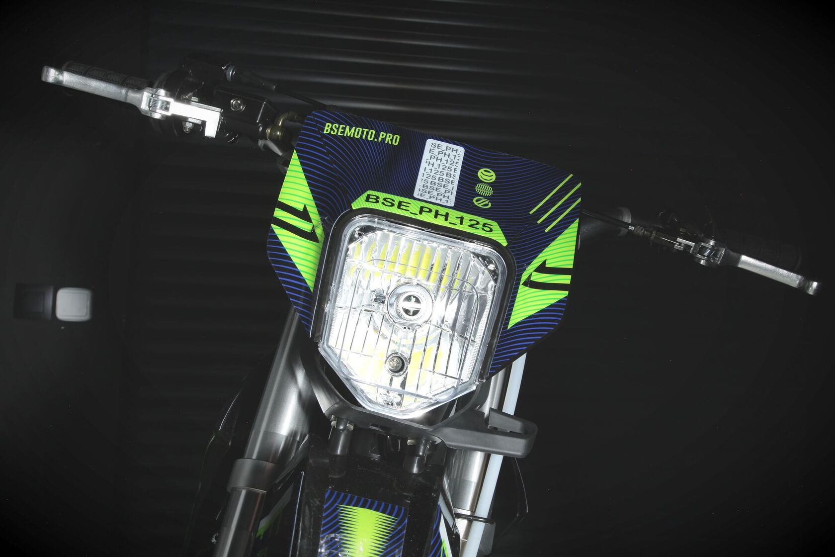 Питбайк BSE PH125 на колесах 17/14 дюймов – один из самых популярных, надежных и продаваемых питбайков 125 куб см среди китайских производителей! Этот классический питбайк объёмом 125 см3 обладает рядом модификаций и полезных усовершенствований, которые дополняют его функционал и отличают от конкурентов. PH125 оснащен колесами классическим для питбайка размером колес 17/14. Основа PH125 - рама из хромомолибденовой стали повышенной жесткости с литыми усилителями - фирменный знак качества завода BOSUER! Cиловая установка питбайка – надежный, тяговитый и мощный 4-тактный двигатель Zonghshen 125 куб см с воздушным охлаждением и мощностью 10 лс. Питает мотор карбюратор Jingke PZ 26. Питбайк оснащен 4-ступенчатой механической трансмиссией. Запуск мотора осуществляется при помощи электростартера или кик-стартера. Подвески с большими ходами: передняя - телескопическая вилка перевёрнуто типа, задняя- моноамортизатор. "Злая" резина, Мощная тормозная система HSK Racing, японские колесные подшипники NTN, усиленная цепь 428 Gold, защита мотора - питбайк полностью укомплектован всем необходимым для покатушек и гонок.