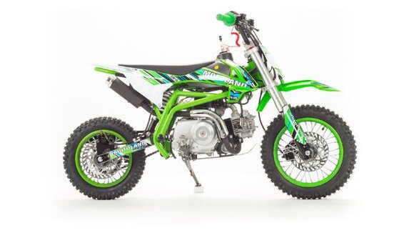 Обновленный надёжный питбайк CRF10 идеален для поездок по грунтовым дорогам и бездорожью. Хорошо чувствует себя на мягком и среднем грунте, разгоняется до 40 км/ч. Оснащён CNC траверсами, фарой, алюминиевыми ободами, весит всего 60 кг. Питбайк прост в управлении и не требует специального ухода, подойдёт как новичкам, так и любителям мотокросса. У кроссового мотоцикла CRF10 отличный узнаваемый дизайн. Конструкция подчёркивает неуступчивый спортивный характер питбайка, который не остановится ни перед одним препятствием. Пластик комбинированный, прочный, не ломается при сгибании. Кроссовый мотоцикл CRF10 доступен в зеленом цвете . Передняя подвеска — телескопическая нерегулируемая вилка перевёрнутого типа, которая отлично подходит для преодоления ям, ухабов и других неровностей плохих дорог или их отсутствия. Задняя подвеска маятниковая с моноамортизатором. Руль 22 мм с высоким подъёмом и перекладиной удобен для мотоциклистов разного роста. Ручки руля — комфортные PRO TAPER. Питбайк оснащён складными рычагами сцепления и переднего тормоза, а также CNC-лапкой переключения передач. Питбайк весит всего 60 кг, при этом выдерживает вес до 100 кг. Оснащён CNC траверсами, рама полудуплексная стальная, мотоцепь качественная. Колёса спицованные, сделаны из прочного и лёгкого алюминия. Размер заднего колеса — 10 дюймов , переднего — 12 дюйм . Тормоза дисковые, передний тормозной суппорт двухпоршневой, задний — однопоршневой. Двигатель Питбайк оснащён карбюратором с фильтром нулевого сопротивления VM22 MIKUNI и одноцилиндровым четырёхтактным двигателем с воздушным охлаждением. Надёжный мотор мощностью 5 л. с. и объемом 70 см³ разгоняет кроссовый мотоцикл CRF10 до 40 км/ч. Коробка передач автоматическая. Система зажигания электронная (CDI). Покрышки с шипами и высоким грунтозацепом идеальны для бездорожья. Мощность мотора и небольшой вес питбайка позволяют ему преодолевать значительные препятствия и непролазную грязь, хорошо заходить в подъёмы. Питбайк CRF10 относится к недорогим моделям, которые при должной эксплуатации работают без сбоев и капризов. Кросс неприхотлив в обслуживании, не занимает много места в гараже. При необходимости в нём легко сменить любую повреждённую деталь. У нас Вы можете купить этот питбайк с бесплатной доставкой по РФ и гарантией до года. Также его можно приобрести в рассрочку или в кредит.