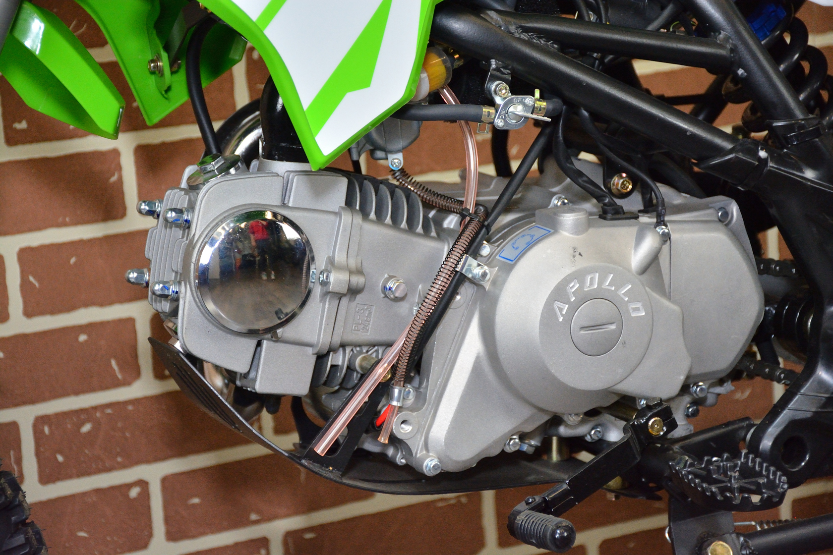Питбайки компании Apollo родом из Франции. Головной офис компании расположен в Париже. Идеология заложенная в бренд носит спортивный характер. Улучшение “породы” происходит в гонках. Модели Apollo (14/12 и 17/14) безошибочно узнаваемы благодаря хребтовой раме с V образным профилем боковой проекции начинающейся от точки крепления маятника под углом 45 градусов. Геометрия рамы учитывает размерность применяемых колес, а расстояние от подножек до седла одно из самых больших, что в свою очередь благотворно влияет на езду в стойке. Подвески питов оснащаются вилками и амортизаторами volt, топовые модели имеют регулировки по отбою. На всех моделях установлены двигатели YX, с объемами: 125, 140 и 150 см3 (последний с разными типами ГБЦ)Питбайк Apollo START LE 125 17/14 - это надежный бюджетный питбайк. Новичкам питбайк даст необходимый опыт и чувство уверенности, а более опытные райдеры оправдают свои ожидания и получат много хороших впечатлений. Пит имеет оригинальный, запоминающийся дизайн. Яркое сиденье имеет антискользящее покрытие, что наверняка оценят любители погонять. Модель START 125LE комплектуется электростартером, замком зажигания,более мощным генератором, регулятором напряжения, кнопкой включения света и запуска на руле. Впереди установлена фара, которую можно снять и установить на его место щиток с номером, который идет в комплекте ,на руле установлены фирменные грипсы с логотипом Apollo.У нас Вы можете купить этот питбайк с бесплатной доставкой по РФ и гарантией до года. Также его можно приобрести в рассрочку или в кредит