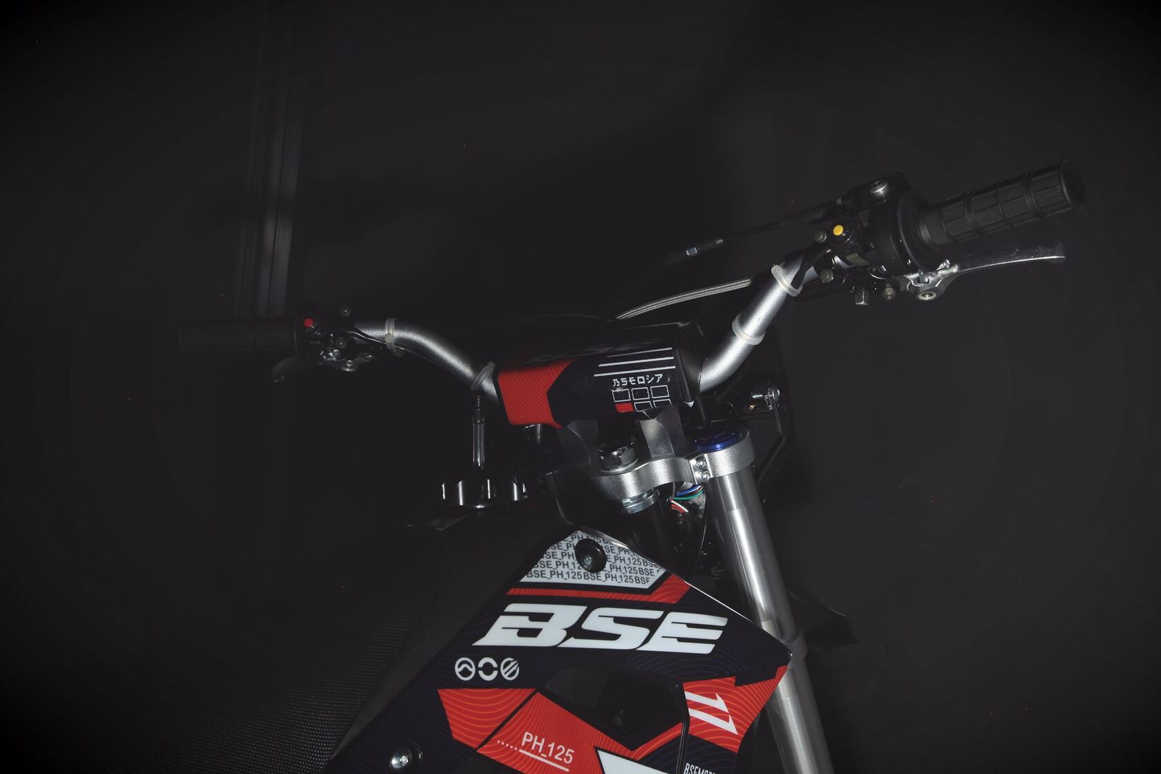 Питбайк BSE PH125 на колесах 17/14 дюймов – один из самых популярных, надежных и продаваемых питбайков 125 куб см среди китайских производителей! Этот классический питбайк объёмом 125 см3 обладает рядом модификаций и полезных усовершенствований, которые дополняют его функционал и отличают от конкурентов. PH125 оснащен колесами классическим для питбайка размером колес 17/14. Основа PH125 - рама из хромомолибденовой стали повышенной жесткости с литыми усилителями - фирменный знак качества завода BOSUER! Cиловая установка питбайка – надежный, тяговитый и мощный 4-тактный двигатель Zonghshen 125 куб см с воздушным охлаждением и мощностью 10 лс. Питает мотор карбюратор Jingke PZ 26. Питбайк оснащен 4-ступенчатой механической трансмиссией. Запуск мотора осуществляется при помощи электростартера или кик-стартера. Подвески с большими ходами: передняя - телескопическая вилка перевёрнуто типа, задняя- моноамортизатор. "Злая" резина, Мощная тормозная система HSK Racing, японские колесные подшипники NTN, усиленная цепь 428 Gold, защита мотора - питбайк полностью укомплектован всем необходимым для покатушек и гонок.