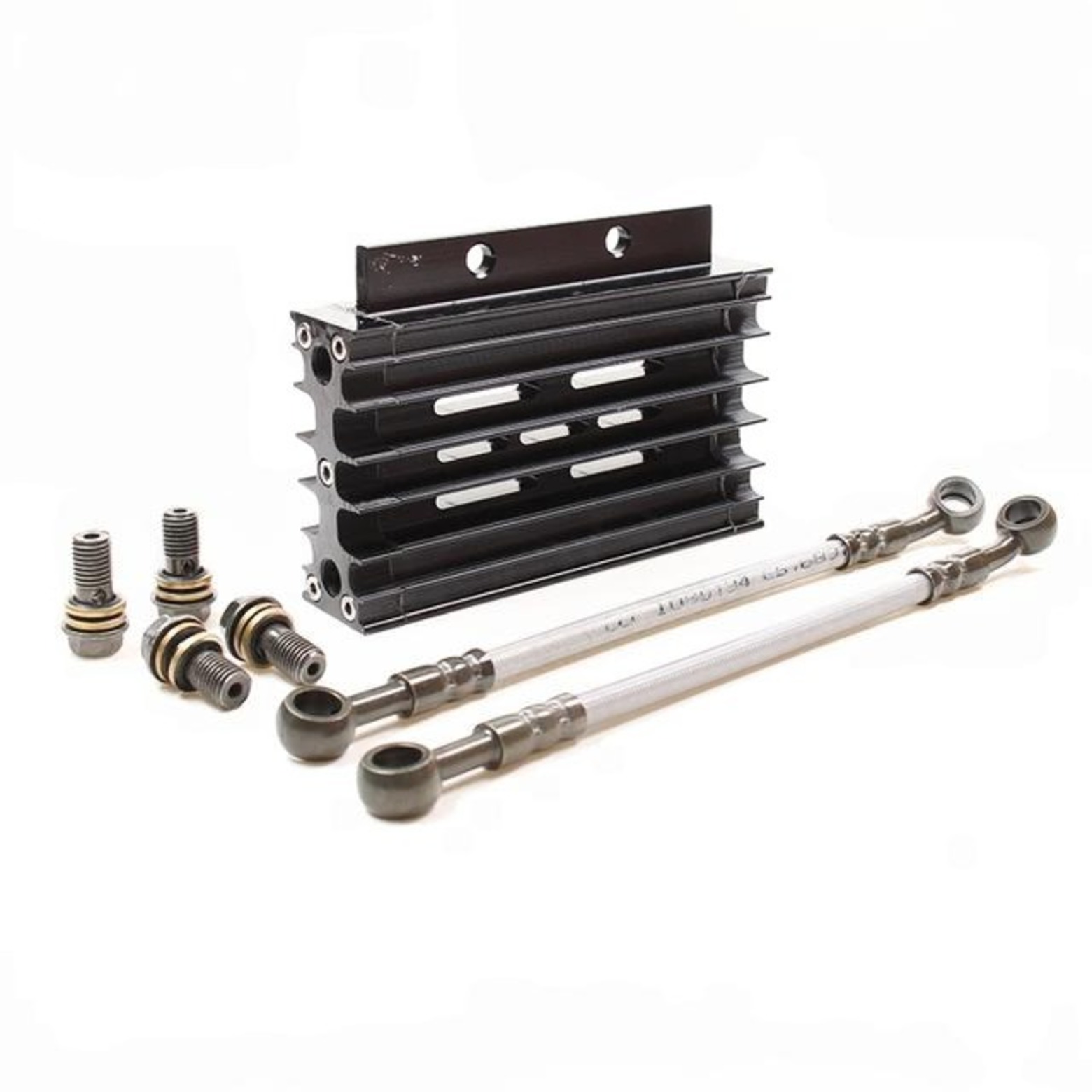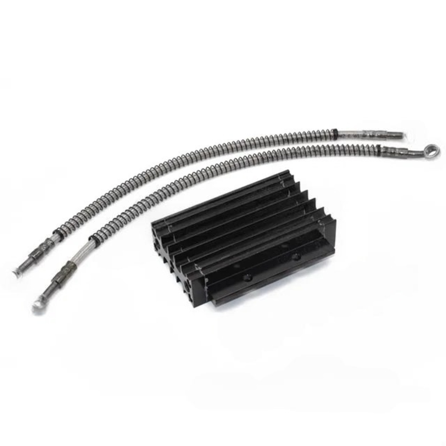 Высококачественный комплект радиатора масляного охлаждения с корпусом из прочного CNC-обработанного алюминия в стильном чёрном анодированном цвете. Разработан для установки на 90% питбайков и мопедов с объёмом двигателя от 125 до 190 см³. Обеспечивает эффективное охлаждение масла, защищая двигатель от перегрева и увеличивая его ресурс, особенно при повышенных нагрузках.