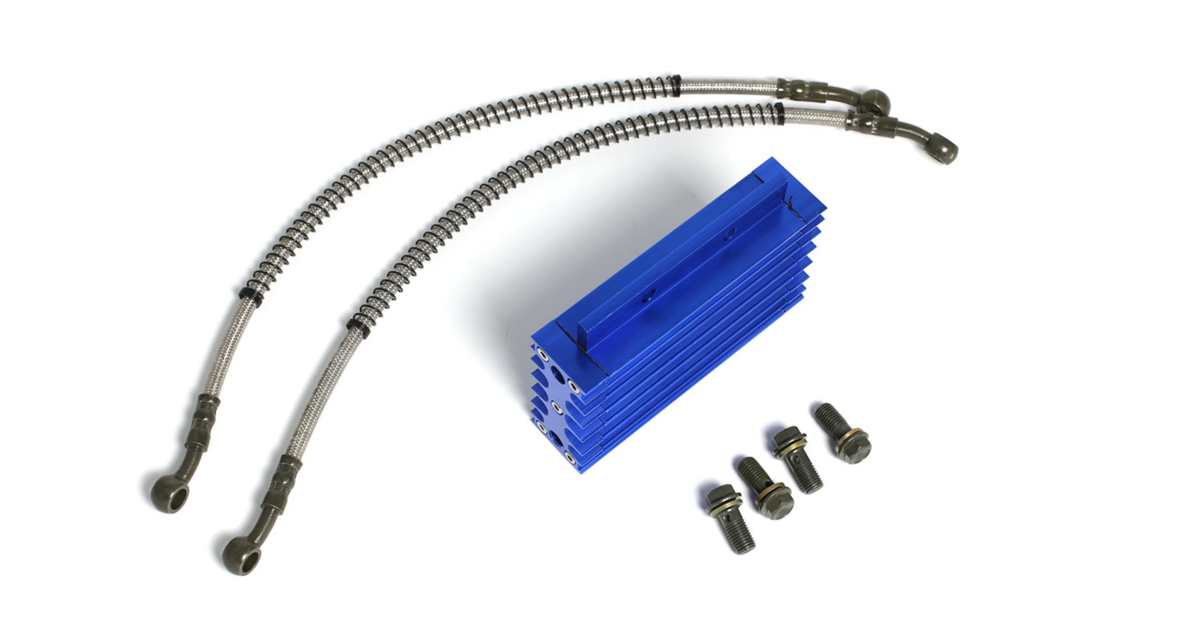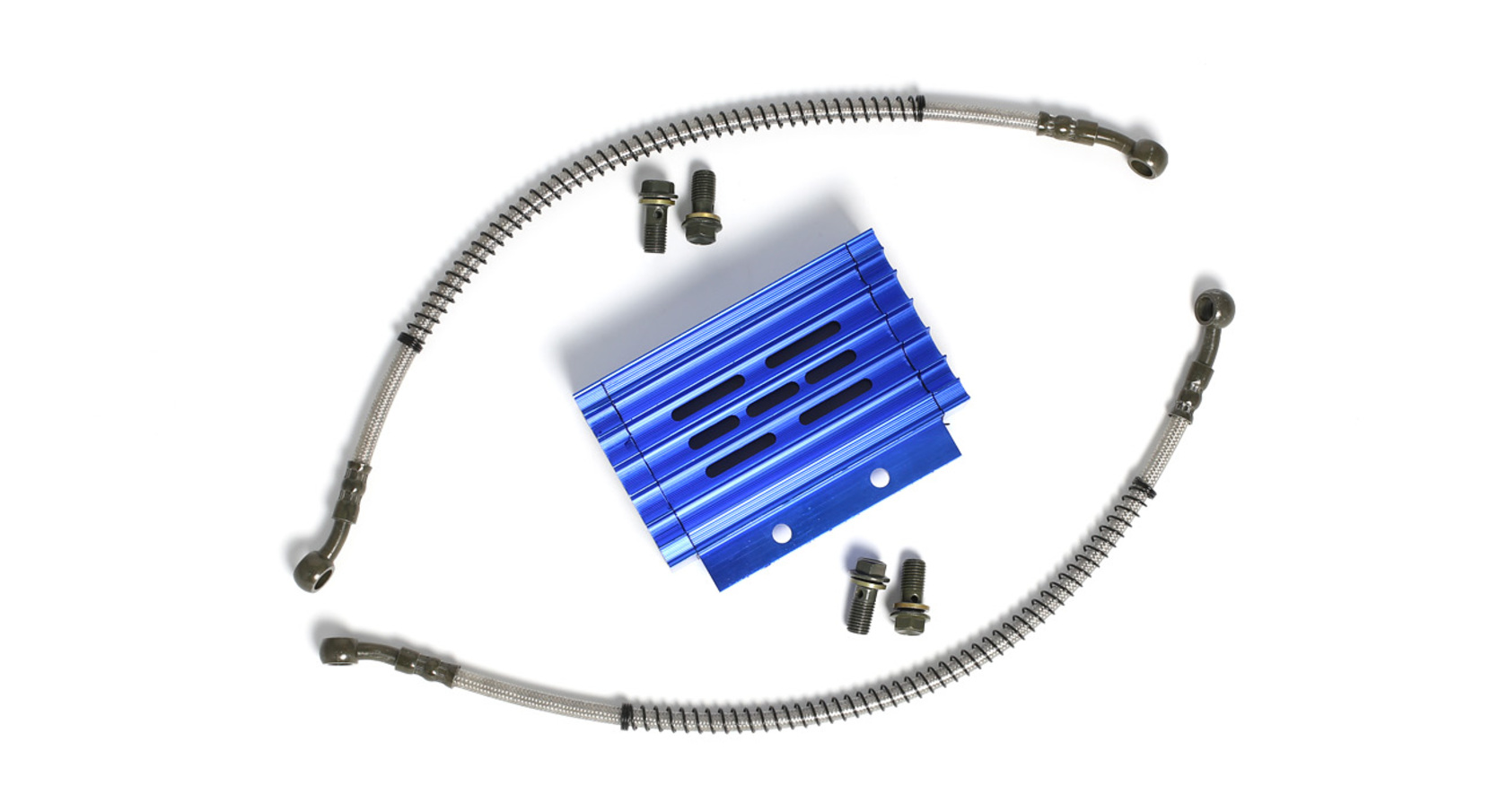 Высококачественный комплект радиатора масляного охлаждения с корпусом из прочного CNC-обработанного алюминия, с ярким синим анодированным покрытием. Предназначен для установки на 90% питбайков и мопедов с объёмом двигателя от 125 до 190 см³. Эффективно охлаждает масло, предотвращая перегрев двигателя и увеличивая его ресурс, особенно при активной эксплуатации.