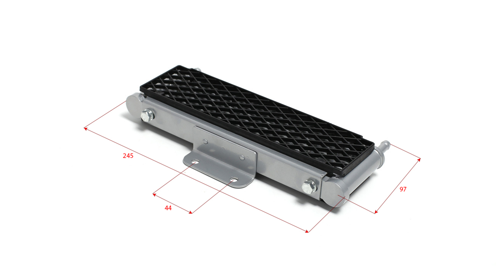 • Широкий алюминиевый радиатор в сборе с шлангами — оптимальное решение для охлаждения высокооборотистых двигателей питбайков объёмом от 140 см³. Подходит для моделей YX140, YX140E, YX150E, YX150-5, YX150/160, ZS155/160/190E и большинства современных питбайков. Радиатор оборудован пластиковыми решётками с обеих сторон для защиты от камней и веток. Крепление осуществляется пластиной с двумя отверстиями, расстояние между центрами — 45 мм. Для подключения шлангов необходимы банжо-болты 10×1,25.