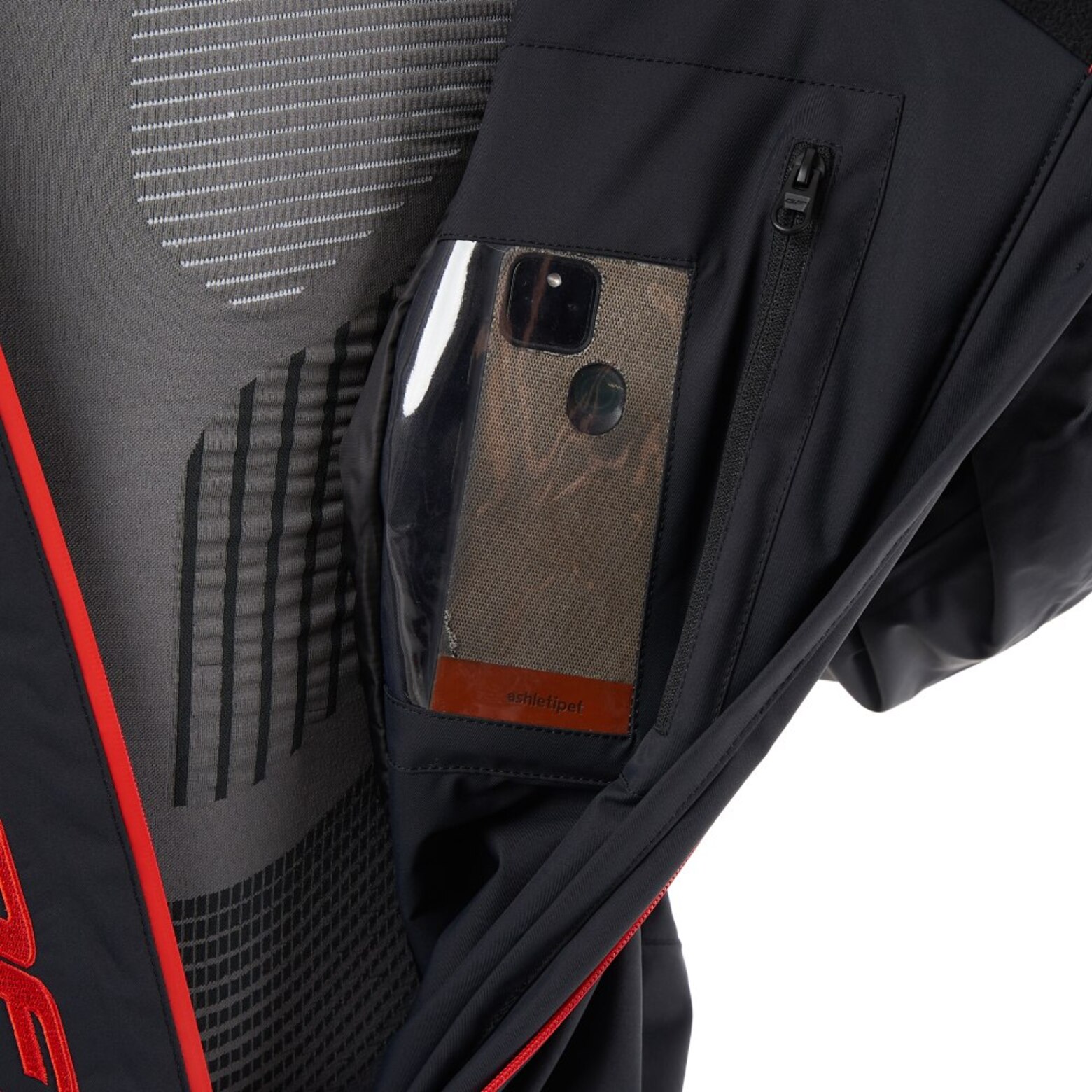 Комбинезон мужской GRAVITY PREMIUM Man Black - Red 2024 (черный)Зимний мужской утепленный комбинезон эргономичного кроя для горных лыж и сноуборда. Станет вашим верным и незаменимым помощником: эффективен и при холодной ветреной погоде, и в более теплых условиях при мокром снеге. Оснащен глубокими функциональными карманами. Максимально защищён от попадания снега внутрь. Все внешние молнии комбинезона – влагозащитные, а швы герметично проклеены. Комфортная посадка позволит в полной мере оценить очередной спуск и даст больше возможностей и лёгкости при выполнении трюков.Сшит из мембранной ткани TORAY DELFY (Япония): 100% полиэстер, плотность ткани 148 г/м², показатели мембраны 10000/10000 (вода/пар). За счёт специального спортивного гидрофобногоутеплителя нового поколения СЛАЙТЕКС ПРЕМИУМ (100 г/м² - тело; 60 г/м² - капюшон, рукава, низ штанин) комбинезон пропускает пар и не впитывает влагу. Тело «дышит» даже при интенсивных нагрузках. Поверхность утеплителя обработана термически (каландрирована), что предотвращает миграцию волокон. Изнутри спина утеплена мягкой тканью полибрушет.Функциональные характеристики:Регулируемый капюшон с защитным козырьком надевается на шлемВысокий ворот надежно защищает от ветраЦентральная молния снабжена тремя замкамиАктивные вентиляции под рукавами и на внутренней стороне бедер позволяют поддерживать температурный балансВерх комбинезона можно снять: внутренние подтяжки с силиконовым нанесением дают возможность комфортно расположиться в помещенииВсе карманы утепленные и снабжены молниями: 6 внешних и 2 внутренних (в том числе для телефона с пленкой touch screen)Рукава имеют утяжки на липучках и эластичные манжеты из лайкры с отверстием для большого пальцаПредусмотрена поперечная молния в нижней части спины ("бомболюк"): можно легко и быстро открыть низ, не снимая при этом весь комбинезонВ нижней части штанин есть защитные вставки из прочной ткани, длина штанин регулируетсяСнегозащитные "фонарики" плотно облегают обувьИмеется петля под тангенту рацииКольцо D-ringИзменения, отличающие модель 2024:На снегозащитной "юбке" добавлена резинка на кнопке для зацепа на ботыНиз брюк расширен на 2.0 см для удобства надевания на ботинокУвеличен размер карманов + увеличен вход во внутренний карман для телефонаНа мягком вороте полибрушет заменен на софтшелл.Салфетка в нагрудном кармане имеет иное крепление (отстегивается)Сделано в России