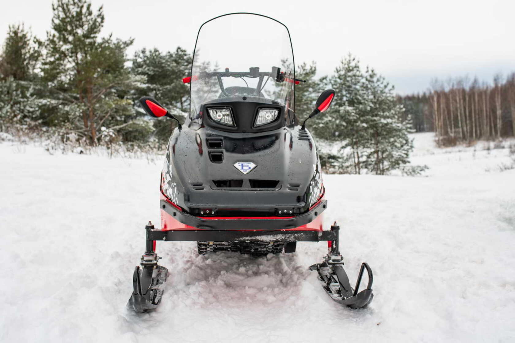 Снегоход из лимитированной линейки техники «Бурлак» в стильном черно-красном цвете и с обновленным дизайном капота. Мощный двигатель 27 л.с. обеспечивает стабильную работу и развивает скорость до 40 км/час. На приборной панели расположены тахометр, спидометр и счетчик моточасов. Багажник оснащен петлями для крепежной шнуровки. Улучшенные подножки имеют антискользящее покрытие. Ручки руля и курок газа с подогревом для комфорта использования в сильные морозы. Модель оснащена устройством для зарядки гаджетов, необходимым во время долгого путешествия. АКБ в комплект поставки не входит.