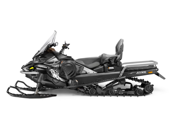 Гусеницы снегохода обладают хорошим сцеплением со снегом и обеспечивают безопасность райдеру. Особенно это важно, когда речь идет о подъемах по заснеженным тропам. На снегоходе установлены: передняя подвеска — независимая, рычажная;