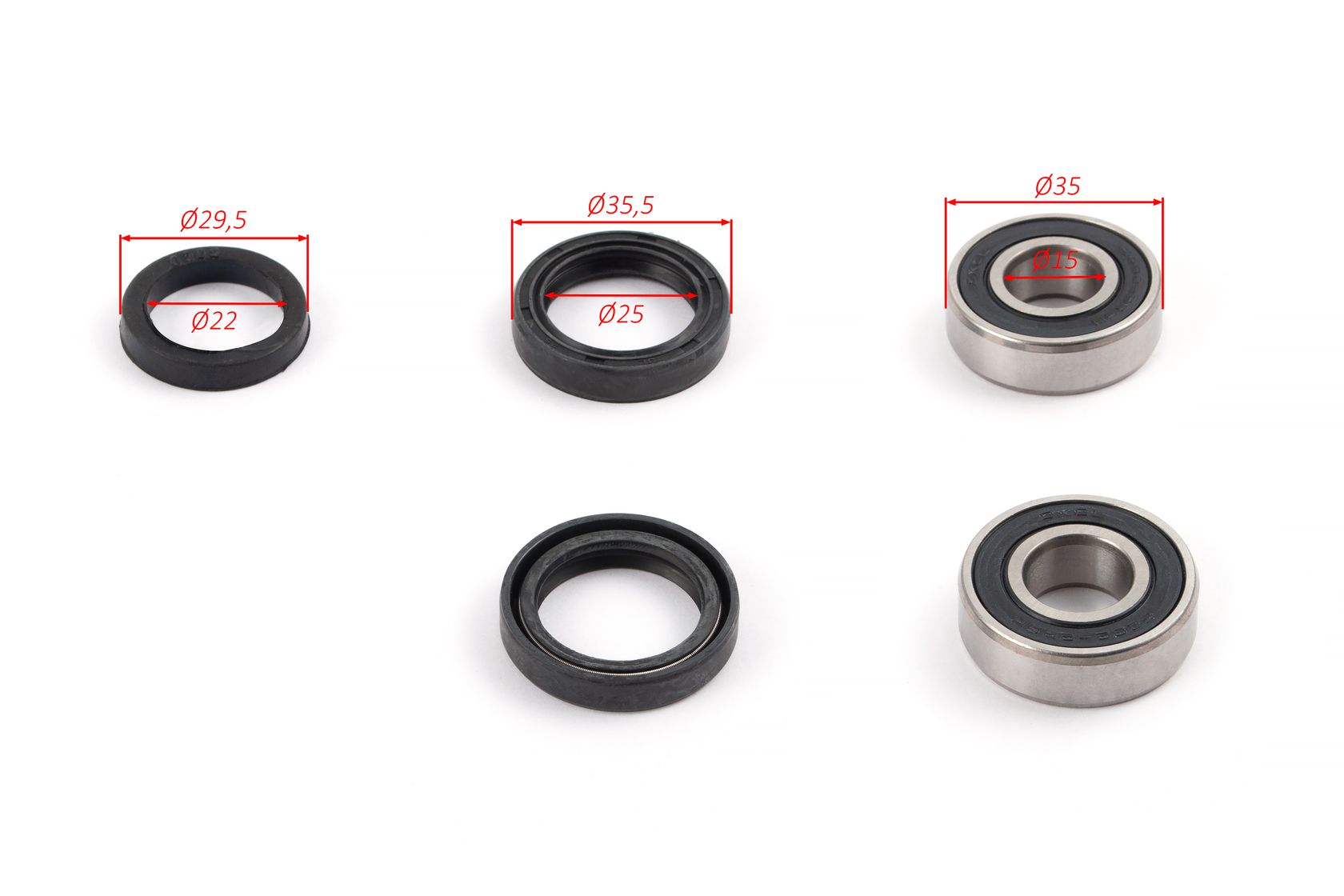 • Готовый комплект для обслуживания и ремонта ступицы переднего колеса. Включает подшипники, маслосъёмные сальники и втулку для быстрой и простой замены всех изнашиваемых деталей, что важно для поддержания плавности хода и надёжности управляемости.