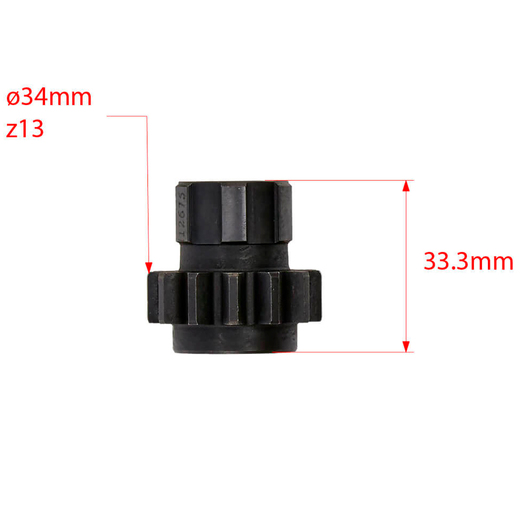 • • Шестерня привода коленвала (первичный вал, под корзину сцепления): 13T, 6 шлицов
