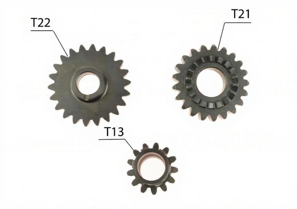 • • Шестерня привода коленвала (вторичный вал): 22T