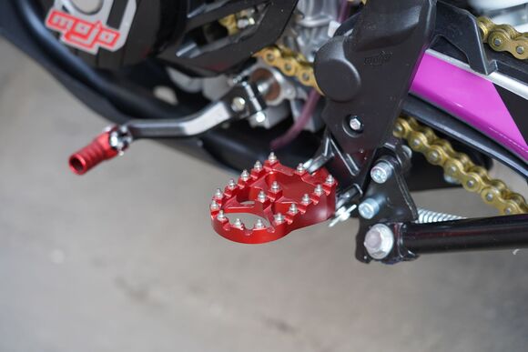 T8 Sport укомплектован профессиональной подвеской Mojo Racing (от компании ZL Sport). Передняя двухкамерная вилка с закрытым картриджем имеет полный диапазон регулировок, диаметр перьев - 48 мм, длина вилки – 930 мм, ход - 280 мм. Сзади установлен полностью настраиваемый моноамортизатор BSE Mojo Racing длиной 480 мм и ходом 120 мм. Подвеска с большими ходами помогает отрабатывать даже самые жесткие приземления, с лёгкостью "глотая" все неровности. Подвеску легко настроить под любой рельеф, любую трассу и стиль езды. Вы ощутите результат, когда будете сокращать секунды круг за кругом! Разработка подвески Mojo Racing производилась опытными инженерами-подвесочниками завода, а настройка - под чутким контролем заводской спортивной китайской командой BOSUER. Особое внимание было направлено на снижение веса всей подвески.Также комплектация Sport включает в себя обновленную переднюю тормозную гидравлическую систему с диском диаметром 240 мм и новым фрезерованным передним суппортом Mojo Racing, для более мощного и прогнозируемого торможения. Также усиленное сцепление, фрезерованные траверсы вилки, фрезерованные подножки с увеличенным зацепом и более легкую фрезерованную заднюю звезду.Наша гордость – мотор TYAN TYX250-SR. Данный мотор является эксклюзивным для бренда BSE на российском рынке. Официально только у BSE Russia есть разрешение на установку мотора TYAN TYX250-SR на свою продукцию. TYAN Motor - профессиональный производитель двигателей и мотоциклов из индустриальной провинции на юго-востоке Китая. TYAN Motor специализируется на разработке, производстве, продаже и сервисе высококачественных моторов и мотоциклов вот уже 11 лет. Капитал компании составляет 1,5 млн $. Территория завода – 29 гектаров, есть современное оборудование и автоматизированные транспортные линии. Собственный первоклассный отдел разработок (R&D center) защитил более 200 патентов. Продукция завода крайне распространена не только в Китае, но и во всем мире. Ежегодно выпускается 1.5 миллионов двигателей и 300 000 мотоциклов. Все нацелено на качество продукции. Цель компании: выпускать самые лучшие двигатели на рынке. Слоган компании: "Еще больше мощности при лучшем качестве".Новый двигатель TYAN TYX250-SR – один из самых технологичных, современных и мощных из доступных на китайском рынке. Рабочий объём -250сс, 4-х тактный, 2 распредвала DOHC, 4-клапанная ГБЦ, водяное охлаждение, балансирный вал. Система питания – спортивный карбюратор Nibbi Racing 34 Black. Все это позволило снять внушительные 29 л.с. при 9000 об. в мин. и 24 Нм при 7500 об. в мин. Коробка передач – механическая 6 ступенчатая, запуск – только электростартером. Мотор сделан максимально легким, прочным и эффективным, с минимальными вибрациями для комфортного передвижения.Ещё одна особенность модели Т8 – стальная рама, которая полностью соответствует всем стандартам самого известного австрийского бренда мотоциклов для кросса и эндуро – KTM. Единая геометрия, эргономика, пропорции и углы вылета вилки. Высококачественная сталь, малый вес и большой запас прочности, идеальная развесовка. Мотоцикл оснащен легким алюминиевым подрамником, системой прогрессии и пластиковой защитой мотора. Установлен прочный, легкий и современный тип пластика.На T8 установлен топливный бак на 8 л, звезды 13t – 49t, «зубастые» покрышки Carrystone 80/100-21 спереди и 110/90-18 сзади. Мотоцикл оснащается полностью светодиодной фарой головн