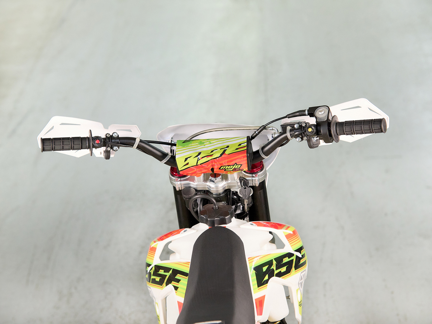 Кроссовый мотоцикл BSE Z2 оснащен надежным и экономичным 4-х тактным Zongshen ZS 166 FMM, контролируемая подача мощности благодаря карбюратору Nibbi, отличный отклик дроссельной заслонки на короткоходную ручку газа. Всепоглощающая подвеска, прогрессия задней подвески, прочная стальная рама BSE, вилка перевернутого типа, мощная гидравлическая тормозная система, буксаторы на всех колёсах, внедорожная резина – BSE Z2 не спасует в условиях бездорожья.Комфорт. Этого на BSE Z2 в избытке: LED фара, электростартер, удобное сиденье, широкий удобный алюминиевый руль, защита рук, прозрачный бак.Мотоцикл доступен в 3 цветовых исполнениях: Roqvi Yellow, Roqvi Green и Roqvi Pink.