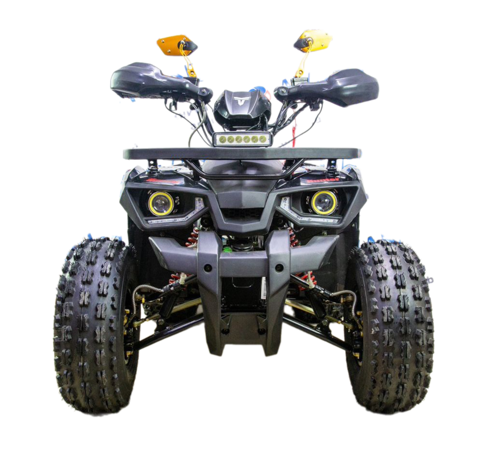 Стильный, дерзкий, запоминающийся квадроцикл Avantis Hunter 8 New Premium 125 кубов – это качественный мотовездеход, призванный стать настоящим другом своему владельцу. Являясь одним из ярчайших представителей линейки Hunter, данная модель спроектирована с учетом всех потребностей и возрастных особенностей гонщика-подростка. Начинать осваивать такую технику можно уже с 10 лет.Взгляд спереди на этот внедорожник создает впечатление монолитности и прочности конструкции. Этому способствуют две круглые светодиодные фары головного света, передний отбойник и небольшие багажники спереди и сзади. Подростковый квадроцикл Avantis Hunter 8 New Premium 125 кубов оборудован эргономичным рулем, спидометром, а так же дополнительным светодиодным фонарем и литыми дисками.Немалую уверенность в надежности аппарата вселяют и 8-дюймовые колеса с внушительными грунтозацепами. Амортизаторы выполняют свою функцию без нареканий и отлично справляются не только с гладкой, но и с ухабистой местностью.Привод у Avantis Hunter 8 New Premium 125 кубов – цепной на заднюю ось. Усиленная 428 цепь намного меньше подвержена растягиванию и поломкам, что позволяет реже обращаться в сервисный центр за квалифицированной помощью. На борту имеется дополнительное светодиодное оснащение, поворотники и фаркоп для транспортировки небольшого прицепа.Все детали идеально сбалансированы и четко взаимодействуют между собой, гарантируя надежность и безопасность при покорении переулков и аллей. Выбирайте любой маршрут: ровные дороги, парковую зону, или бездорожье, покрытое травой и камнями! Ваш малыш с удовольствием променяет скучные гаджеты на резвые покатушки по склону!К слову, вам не обязательно постоянно находиться рядом. Двигатель запускается с помощью электростартера. Переключение передачи осуществляется по схеме D-N-R. Более того, квадроцикл Avantis Hunter 8 New Premium 125 кубов оснащен задним ходом, что пригодится, если внедорожник застрянет на каком-нибудь труднопроходимом участке пути.Максимальная скорость у Avantis Hunter 8 New Premium 125 кубов – 60 км/ч, что для подрастающего гонщика более чем достаточно. Но, как и у всех вездеходов серии Avantis, здесь есть встроенная функция родительского контроля, на тот случай, если ваш ребенок не обладает должным уровнем подготовки для использования квадрика на всю мощь, а также аварийная чека, призванная защитить наездника от случайных травм.Объем топливного бака составляет 3,5 л. И при условии, что топливо расходуется экономно, одной заправки хватит на несколько часов безудержного веселья.Словом, если вы решили купить квадроцикл Avantis Hunter 8 New Premium 125 кубов, то можете быть уверены, что он станет лучшим подарком для вашего сына или дочери. Оставьте заявку на нашем сайте, мы осуществляем доставку по всей России.