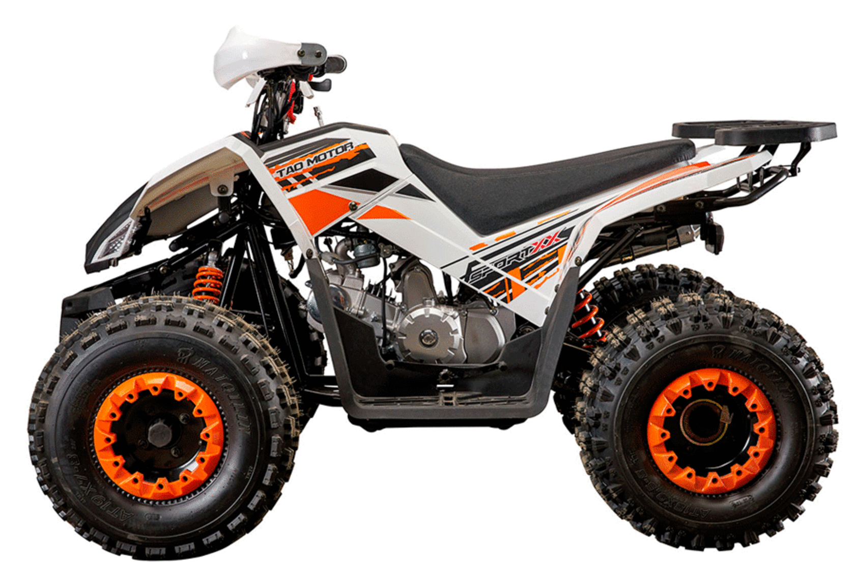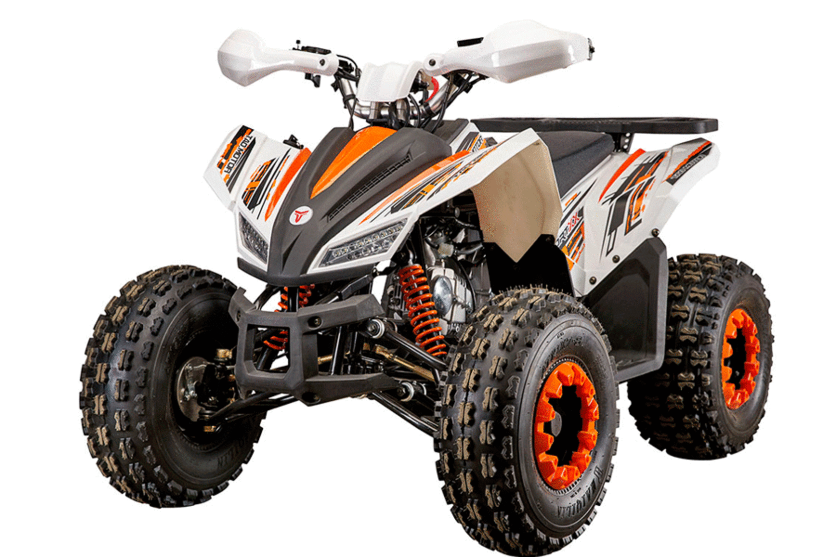 Спортивный экстерьер и модная гоночная многоцветная раскраска пластиковых частей корпуса привлекает внимание всех, кому квадроцикл попадается на глаза. Песочные шины повышенной проходимости с агрессивным протектором гармонично дополняют дизайн машины. Защита рук водителя, багажник, LED-спидометр, светодиодные фары и стоп-сигнал – всё это входит в базовую комплектацию АТВ.