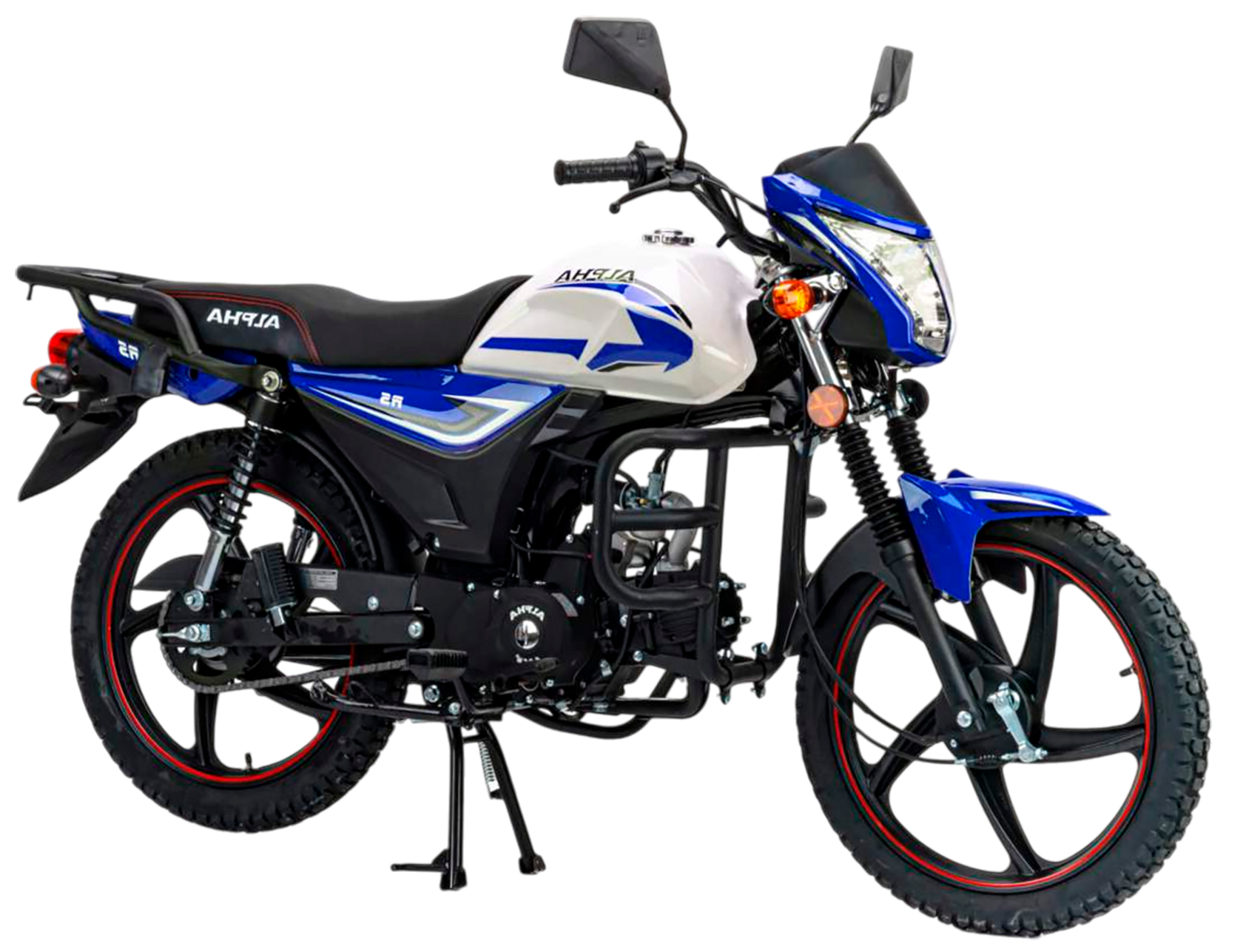 MotoLand Alpha RS 11 это продолжение легендарного и всеми любимого мопеда Alpha, внешний вид приобрел современную и эргономичную форму по пластику и обновленную приборную панель.Выпускается в трех цветах: красный, синий, черный.Мопед можно использовать для самых различных целей: для одиночного или совместного передвижения в городском потоке, сельской местности, поездки на природу, рыбалку и охоту.При этом он универсален и подходит мотолюбителям любого возраста и опыта вождения.Для подростков, подойдет как подарок и первый мотоцикл для только начинающего свое знакомство с миром мототехники.Для взрослых, которым нужна техника для поездок из точки А в точку Б и обратно, именно в таком режиме он способен показать себя с лучшей стороны.Мопед полностью отвечает требованиям к безопасному движению по городу и за городом: оснащен фарой дальнего и ближнего света, поворотниками, стоп-сигналом, звуковым сигналом, зеркалами заднего вида, габаритными светоотражателями.Для того чтобы ездить на мопеде, нет необходимости в регистрации в ГИБДД и страховке.Техническая сторонаМопед поставляется с 48 кубовым одноцилиндровым четырехтактным двигателем с воздушным охлаждением (1P39FMB). Установлен карбюратор PZ19.Двигатель работает ровно, имеет высокую мощность в широком диапазоне оборотов, что позволяет комфортно трогаться и быть уверенным, что двигатель не заглохнет в неподходящий момент.Двигатель имеет возможность легкого запуска с кнопки на руле, так как имеет электростартер, а при необходимости можно воспользоваться кикстартером.Механическая трансмиссия содержит 4 передачи.Мопед имеет хорошую динамику разгона, расход 3 л на 100 км, объем бака 7л, которого хватит на 200+ км.