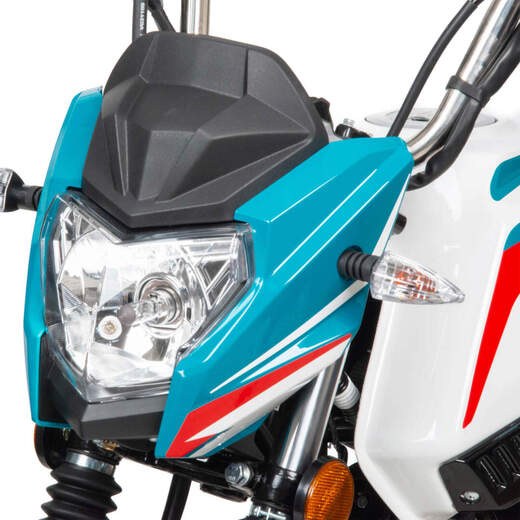Мопед полностью отвечает требованиям к безопасному движению по городу и за городом: оснащен фарой дальнего и ближнего света, поворотниками, стоп-сигналом, звуковым сигналом, зеркалами заднего вида, габаритными светоотражателями.