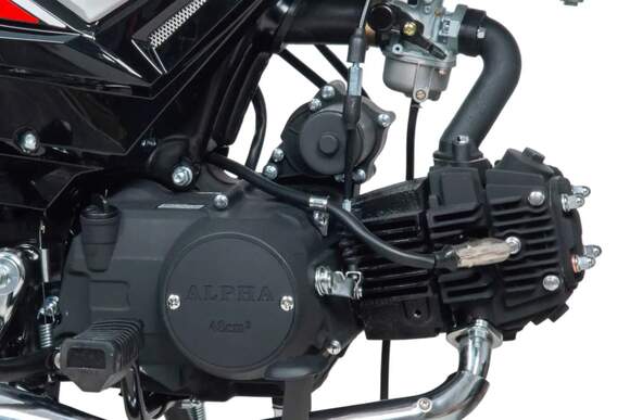 Мопед поставляется с 48 кубовым одноцилиндровым по документам, 110 по факту четырехтактным двигателем с воздушным охлаждением (1P39FMB). Установлен карбюратор Keima PZ19.