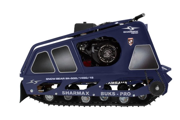 Мотобуксировщик SNOWBEAR S500 1450 HP15 MAXIMUM настоящий помощник на охоте и рыбалке, решит множество задач в сельскохозяйственной деятельности. Идеальное сочетание цены и качества.Гусеница мотобуксировщиков “Sharmax” шириной 500 мм является надежной и универсальной. Обладает повышенной стойкостью к износу, а специальная форма протектора дает отличное сцепление с поверхностью, при этом сохраняя уверенную маневренность мотобуксировщика.