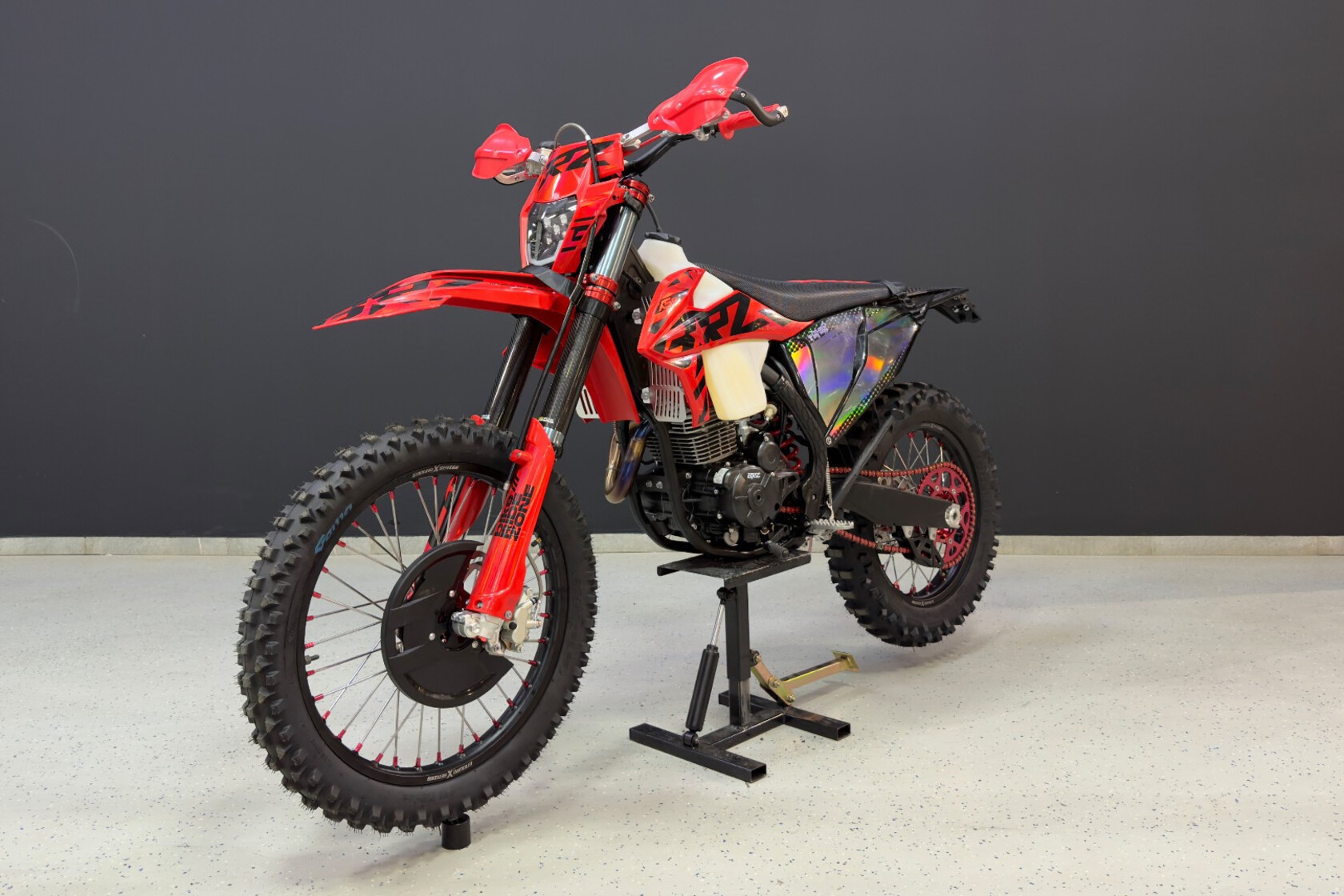 Мотоцикл BRZ X5S 2023 года - полноразмерный эндуро мотоцикл. Он специально создан для райдеров, которые уже выросли из питбайка и хотят раздвинуть свои пределы.Он подойдет и начинающим эндуристам с ростом от 175 см. X5S идеально себя чувствует в лесных прохватах с преодолением различных препятствий благодаря небольшому весу, тяговитому двигателю и большим колесам 21/18.Мотоцикл максимально упрощен для большей надежности. Из электрики он снабжен светодиодной фарой, электростартером. Установлен двигатель Zongshen ZS172FMM-7 4V с балансировочным валом. По сути в нем просто нечему ломаться, можно смело ездить в лесные мото походы на 40 - 200 км. Инженеры BRZ moto учли все ошибки конкурентов и снабдили мотоцикл качественными подвесками и алюминиевыми ободами Enduro X-Series. Был переработан узел верхнего крепления двигателя к раме, избавивший от повышенных вибраций. Ведомую звезду закрепили на 6 потайных болтов. Ну и не стали экономить на карбюраторе - в базе установленNIBBI RACING BLACK PWK32! Подведя итог можно смело заявить что X5S - идеальный выбор для тех, кто хочет купить настоящий мотоцикл!