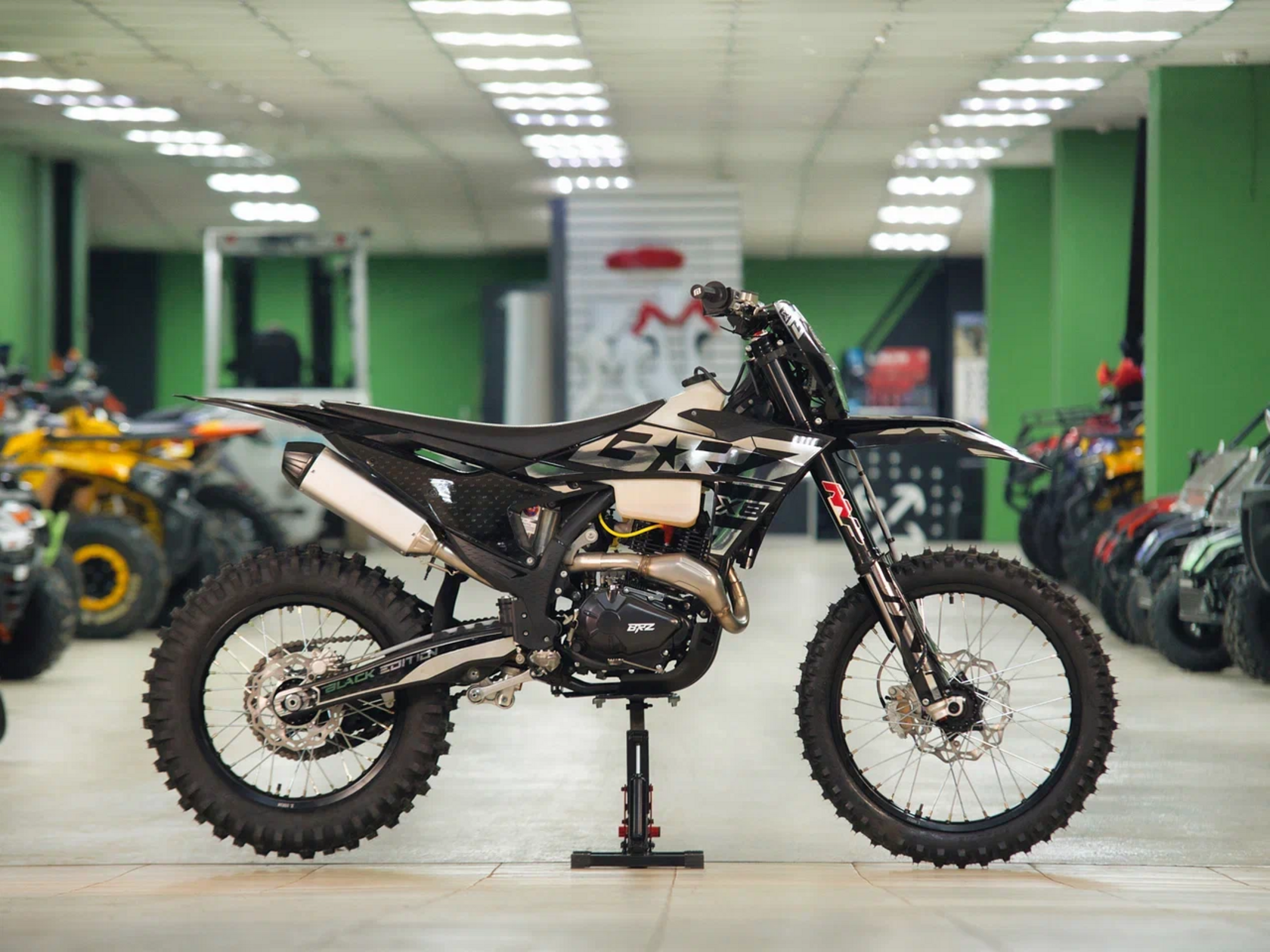 Навесное – Руль 28мм.Короткоходная ручка газа. Цепь 520. Алюминиевая лапка КПП, боковые накладки на рамы. Счетчик моточасов, приборная панель. Стоп сигнал.