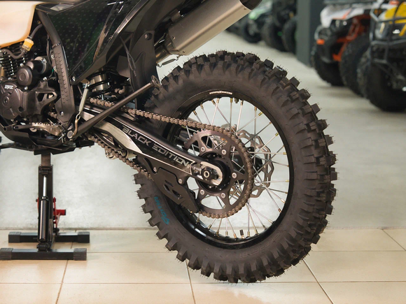 Размер и тип колес – 21х18 обода алюминиевые. Размер передней покрышки 80/100-21.Размер задней покрышки 120/100-18