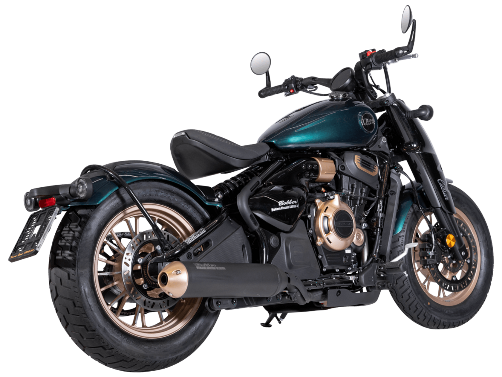 Мотоцикл CYCLONE RA600 Bobber – одноместный круизёр, готовый рассекать по городу и скоростным трассам. Лёгкая в управлении и надёжная модель с 550-кубовым двигателем, имеющая комфортный расход топлива для ежедневных поездок, хороший запас хода и оптимальную длину передач для маневрирования в потоке.Мотоцикл оснащён 2-цилиндровым 4-тактным двигателем ZS550SR жидкостного охлаждения с 4 клапанами на каждом цилиндре и 2 распредвалами. Двигатель имеет объём 550 см³ и способен обеспечить мощность в 59 л.с. при 8500 об/мин. Максимальный крутящий момент в 55 Нм достигается при 6500 об/мин. Подачу топлива обеспечивает инжектор BOSCH. Механическая коробка передач имеет 6 ступеней и схему 1-N-2-3-4-5-6.Максимальная скорость 165 км/ч.Объём топливного бака 14,5 литра.Колёса с легосплавными дисками имеют диаметр 16 дюймов. В качестве подвески используются телескопическая вилка и регулируемый маятник с моноамортизатором. Мотоцикл оснащён датчиками давления в шинах, показатели от которых выводятся на приборную панель. Клиренс в 150 мм позволяет комфортно проходить препятствия на дороге.Тормозная система произведена компанией J.JUAN, входящей в холдинг BREMBO. На оба колеса установлены гидравлические дисковые тормоза. Спереди установлен 2-поршневой суппорт, сзади используется однопоршневой суппорт с плавающей скобой. Дополнительную безопасность обеспечивают системы ABS и TCS. Они повышают устойчивость при экстренном торможении и на сложных поверхностях.Габариты модели 2190х855х1115 мм, снаряженная масса 198 кг. Высота по седлу 725 мм, колёсная база 1510 мм. Мотоцикл оснащён USB-портом для зарядки устройств