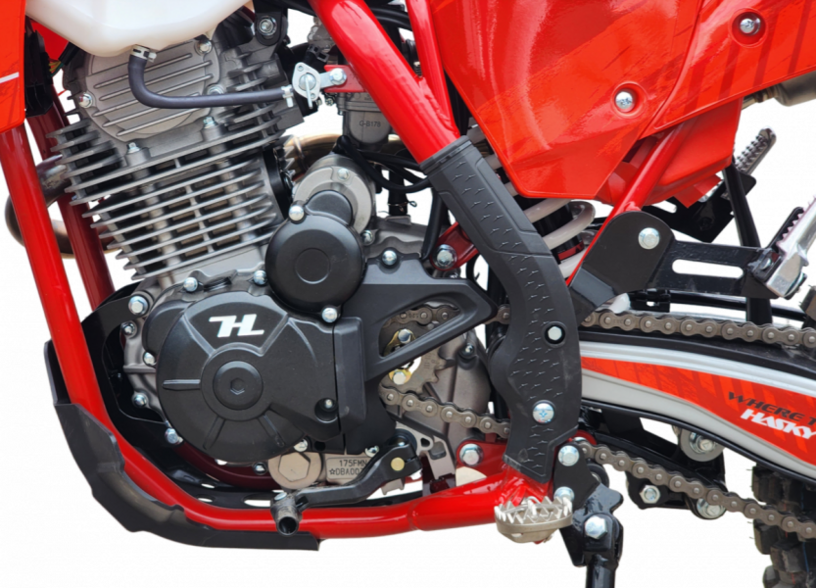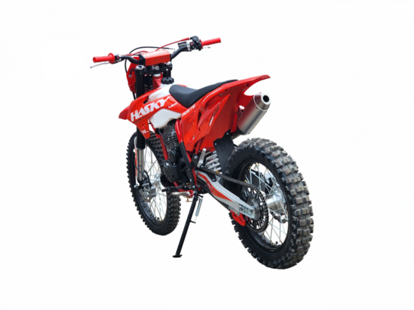Hasky F5 Ride 2025 представляет собой самую доступную модель в линейке бренда, отличаясь от старшей F5 PRO 2025 комплектацией, но сохраняя при этом надежность и качество, присущие семейству Hasky. Этот среднеразмерный эндуро-мотоцикл на колесах 21"/18" построен на прочной раме K5.В основе модели лежит надежный двигатель Loncin TM300, оснащенный балансировочным валом для снижения вибраций, пятиступенчатой коробкой передач и комбинированной системой запуска (электростартер + кик-стартер). Подачу топлива обеспечивает производительный карбюратор Nibbi PE 30 Race. Управляемость и комфорт на бездорожье обеспечивают передняя регулируемая вилка MTN диаметром 43 мм и задний моноамортизатор.Мотоцикл комплектуется передним колесом 21" с покрышкой 80/100-21 и задним 18" с покрышкой 110/100-18, оснащенными фиксаторами. Эргономика управления улучшена за счет новых пультов в стиле KTM, ручки газа Nibbi и грипсы lock-on. Защита двигателя, рамы и перьев повышает долговечность. Дополнительные удобства включают подножки для пассажира, пеги увеличенной ширины от AJ1, мощную светодиодную фару и счетчик моточасов.Особое внимание уделено безопасности и надежности: воздушный фильтр увеличенной площади изготовлен из негорючего материала, а вся проводка мотоцикла полностью влагозащищенная. В комплект также входит набор инструментов AJ1, а новая усиленная графика придает модели стильный вид. Hasky F5 Ride 2025 предлагает отличное сочетание цены, надежности и оснащения для начинающих и опытных райдеров.