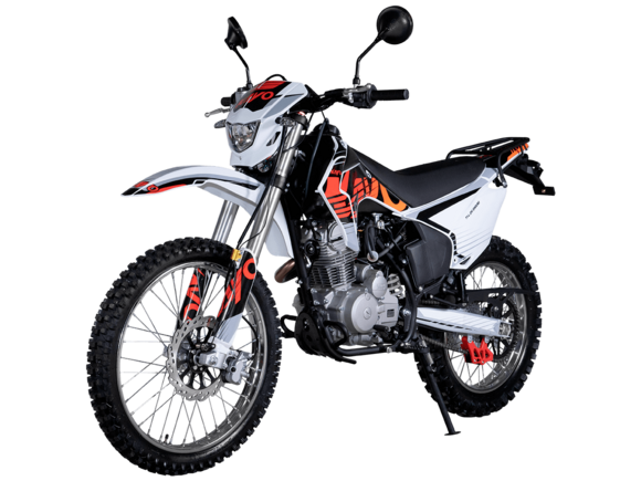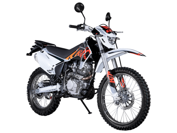 Мотоцикл KAYO T1-L 250 Enduro 21/18 2025 ПТС – облегчённая модель надёжного и производительного эндуро, уже готовая к покорению внедорожных трасс.Оснащён 4-тактным двигателем объёмом 223 см³ с верхним распредвалом и воздушным типом охлаждения. Способен развивать мощность в 16,32 л.с. при 8500 об/мин, а максимальный крутящий момент 17,5 Нм достигается при 6500 об/мин. За подачу топлива отвечает карбюратор PE30. Он обеспечивает топливную экономность и бесперебойную работу двигателя даже в самых жёстких условиях. Соотношение диаметра цилиндра и хода поршня 65,5x62,2. Степень сжатия 9,6:1. Запуск двигателя осуществляется с помощью электростартера или кикстартера. Тип зажигания CDI. Снизу установлена пластиковая защита двигателя.Механическая коробка передач имеет 5 ступеней. Привод цепной. Объём топливного бака 9 литров.На мотоцикл установлены спицованные колёса с алюминиевыми ободами и ступицами. Обуты во внедорожные покрышки YUANXING 80/100-21 и 110/100-18.Длина подвески спереди 830 мм, длина задней подвески 370 мм. Задняя подвеска оснащена прогрессией. Траверсы выполнены из литого алюминия, а прогрессия – из стали. За торможение отвечают дисковые гидравлические тормоза.Прочная рама и маятник выполнены из стали. Мотоцикл имеет ПТС и оснащён всем необходимым для поездок по дорогам общего пользования: галогеновая фара, диодные поворотники, диодный стоп-сигнал, звуковой сигнал, цифровая приборная панель, зеркала заднего вида.Для управления установлен руль переменного сечения 28 мм Fatbar со стандартными рычагами сцепления и тормоза. Имеется платформа для перевозки грузов и дополнительные подножки для поездок с пассажиром.Габариты мотоцикла 2100х810х1180 мм, вес 115 кг. Клиренс 300 мм, колёсная база 1400 мм, высота по седлу 890 мм.