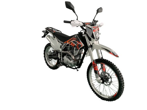 KAYO K1-J 150 ROAD (CB150) 19/16 (2025 г.) ПТС – мотоцикл, который создан для тех, кто готов покорять внедорожные трассы.4-тактный мотор с воздушным охлаждением и одним верхним распределительным валом (SOHC) сочетает надёжность и отличную динамику. Объём двигателя составляет 144,6 см³. Он обеспечивает мощность в 12 л.с. при 8500 об/мин и максимальный крутящий момент 10 Н·м при 6500 об/мин. Степень сжатия 9,2:1, диаметр и ход поршня – 65,5 x 49,5 мм. Всё это работает в паре с карбюратором PE24, который гарантирует стабильную работу двигателя.Система запуска универсальная: электростартер и кикстартер, чтобы вы всегда были готовы к поездке. Тип зажигания CDI.Коробка передач механическая с 5 ступенями. Привод цепной. Топливный бак на 6 литров.Мотоцикл оснащён нерегулируемой передней 735 мм вилкой и задним 360 мм амортизатором. Задний маятник и прогрессия стальные. Траверсы выполнены из литого алюминия.Колёса размером 19 дюймов спереди и 16 дюймов сзади. Алюминиевые обода, ступицы и буксаторы. Для уверенной остановки предусмотрены гидравлические дисковые тормоза спереди и сзади.Габариты 1850×760×1060 мм и сухая масса всего 95 кг. Колёсная база 1250 мм. Дорожный просвет 250 мм, высота по седлу 790 мм.На KAYO K1-J 150 ROAD можно выезжать на дороги общего пользования благодаря наличию ПТС, цифровой приборной панели, звукового сигнала, зеркал заднего вида и необходимого набора светотехники.Имеются стальные подножки для поездок с пассажиром и задняя багажная платформа. Пластиковая защита рычагов.