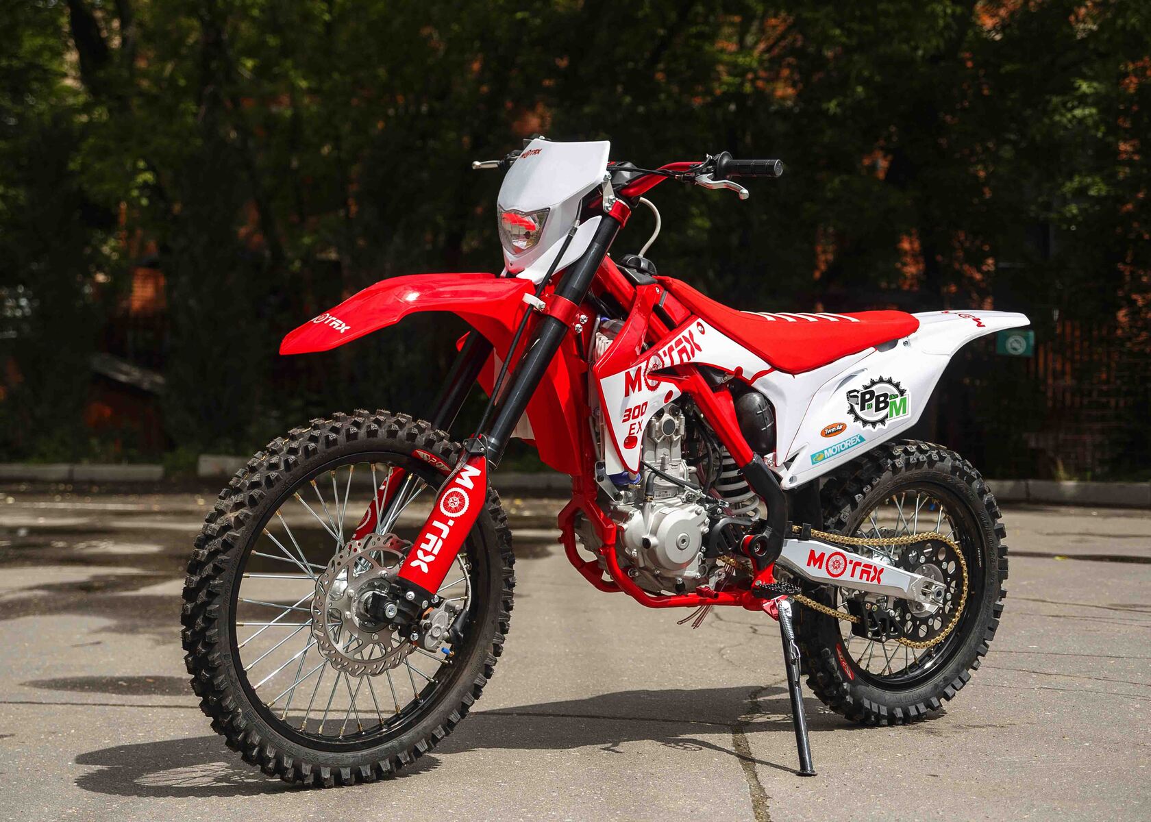 Мотоцикл MOTAX EX 300 позволит Вам испытать все грани удовольствия от экстремальной езды по бездорожью. Данная модель, предназначенная для гонок в стиле мотокросс и эндуро, является современным предложением от MOTAX и олицетворяет новейшие разработки инженерной мысли.Этот яркий, стильный и агрессивный мотоцикл с отличными эксплуатационными и ходовыми характеристиками найдет отклик в душе любителя скорости и драйва. В основе транспортного средства – надежная хромомолибденовая рама, готовая к высоким нагрузкам и резким маневрам. Она выдержит райдера весом до 150 кг.В основе ходовой части мотоцикла – классическая шестиступенчатая коробка передач (1-N-2-3-4-5-6), где N – нейтральная передача. Привод цепной. Качественная дисковая гидравлическая тормозная система гарантирует своевременное и четкое торможение.Колеса «обуты» в прочные покрышки с выраженным агрессивным рисунком протектора. Размер переднего колеса – 80/100-21", заднего – 100/90-18". У нас Вы можете купить Мотоцикл MOTAX EX 300 с бесплатной доставкой по РФ и гарантией до года. Также этот мотоцикл можно приобрести в рассрочку или в кредит.