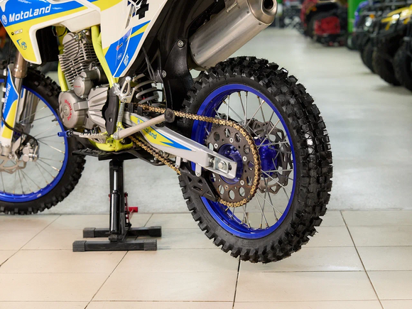 MotoLand TT 250 Новинка весны 2020 года. Теперь с ПТС.Надёжная техника из самых популярных компонентов оснащена Двигателем ZONGSHEN 172FMM с кикстартером и электростартером Мощностью 21 Л.С. на двигателе установлен Карбюратор NIBBI PE28.Это полноразмерный кроссовый мотоцикл его база по осям составляет 1430 мм., и габаритами 2180х800х1300 мм. Высота по седлу составляет 950 мм., что по сравнению с Моделью XT 250 ST 21/19 ниже порядка 20 мм. Что позволяет комфортно себя чувствовать райдерам среднего роста.За счет сбалансированной базы мотоцикл имеет отличную управляемость, а конструкция рамы и особенности настройки подвески GPX способствуют максимальному поглощению неровностей дорожного покрытия, а так же усиленная прогрессия на игольчатых подшипниках.Алюминиевые обода c антибуксаторами, усиленными спицами и ступицами CNC. На кроссовой резине Yuanxing 80/100-21 / 100/90-18На мотоцикле установлена обновлённая тормозная система аналог «brembo» с медными колодками , что обеспечивает отличные тормозные характеристики. Особенностью заднего тормоза является, лапка верхнего расположения с эксцентриковой регулировкой.Выпускной патрубок с резонатором Power Bomb имеет крепления на пружинах для снижения вибрации. Глушитель с уникальным дизайном прямоточного типа, полностью алюминиевый для облегчения веса.