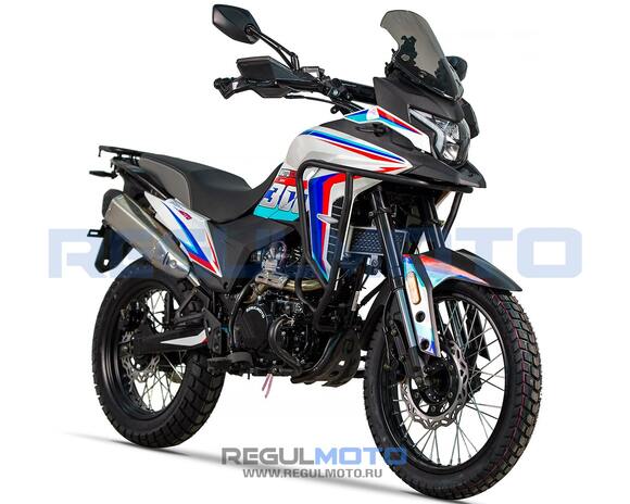 Regulmoto XADV — это современный туристический эндуро, сочетающий в себе комфорт для дальних поездок и отличные внедорожные качества. Модель создана для тех, кто хочет чувствовать себя уверенно как на трассе, так и на сложных грунтовых маршрутах.В основе мотоцикла — надёжный одноцилиндровый 4-тактный двигатель Hensim 174YMN объёмом 279,6 см³, развивающий мощность 28 л.с.. Балансировочный вал снижает вибрации, а система воздушно-масляного охлаждения обеспечивает стабильную работу даже при длительных нагрузках. Топливная система на карбюраторе NIBBI Racing PWK34 и зажигание CDI гарантируют точную подачу топлива и быстрый отклик на газ.Трансмиссия механическая, с 6-ступенчатой коробкой передач, запуск осуществляется удобным электростартером.Подвеска адаптирована для путешествий и лёгкого бездорожья: спереди установлена перевёрнутая телескопическая вилка длиной 940 мм, сзади — надёжный моноамортизатор. Такая комбинация делает езду устойчивой и комфортной на любом покрытии.За безопасность отвечают дисковые гидравлические тормоза: передний диск диаметром 220 мм с двухпоршневым суппортом и задний дисковый тормоз с двухпоршневым суппортом.Колёсная база 1345 мм, высота по седлу 860 мм и удобная эргономика делают XADV доступным для большинства райдеров. Внедорожные колёса размером 90/90-19 спереди и 130/90-17 сзади обеспечивают отличное сцепление как на асфальте, так и на грунтовых дорогах.Большой топливный бак объёмом 13,5 литров позволяет проходить длинные маршруты без частых остановок на заправку, а прочная конструкция выдерживает нагрузку до 150 кг. При этом собственный вес мотоцикла составляет всего 150 кг, что делает его лёгким в управлении.Габариты модели — 2010×930×1220 мм, что в сочетании с компактной рамой делает Regulmoto XADV удобным и манёвренным туристическим эндуро. Основные преимущества:Двигатель 280 см³ / 28 л.с. с балансировочным валомВоздушно-масляное охлаждение для надёжной работы в любых условиях6-ступенчатая механическая коробка передачСовременная подвеска (перевёрнутая вилка 940 мм и моноамортизатор)Дисковые гидравлические тормоза с двухпоршневыми суппортамиВместительный бак на 13,5 литровУдобная посадка: высота седла 860 мм, вес всего 150 кгRegulmoto XADV — это универсальный туристический эндуро для дальних поездок, путешествий и активного отдыха. Он сочетает в себе мощность, комфорт и проходимость, позволяя уверенно чувствовать себя как на шоссе, так и на пересечённой местности.