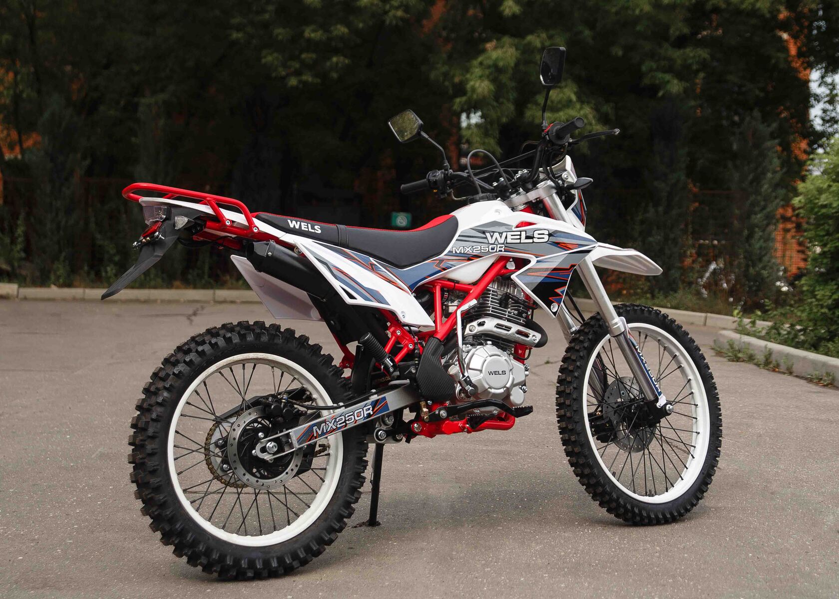 Представляем Вам новую модель мотоцикла от компании WELS - Мотоцикл WELS MX-250 R 2019-го года выпуска. У нас Вы можете купить этот мотоцикл с бесплатной доставкой по РФ и гарантией до года. Также его можно приобрести в рассрочку или в кредит. Мотоцикл WELS MX-250 R является надежным и комфортным в эксплуатации. В раме на колесах 21/18 с стальными ободьями и буксаторами установлен проверенный 4-тактный двигатель с воздушным охлаждением Zongshen 165FMM. Подготовкой топливной смеси для двигателя занимается карбюратор KEIHIN; технический потенциал силовой установки мотоцикла позволяет продемонстрировать 17 «лошадей» максимальной мощности. Подвеска аппарата представлена традиционными вилкой-перевертышем спереди, а также маятником, линком прогрессии и моноамортизатором .Высокая надежность, удобство управления в сложных условиях бездорожья, а также простота сервисного обслуживания обеспечена подбором качественных комплектующих и компонентов мотоцикла.